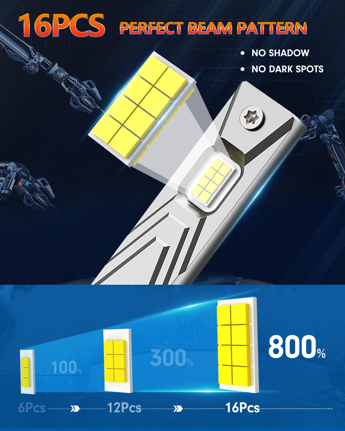 • 【Perfect Beam Pattern】These H1 fog light bulbs are engineered to replicate the 1:1 light pattern of the original bulbs. The ultra-thin 0.039' chip spacing provides 360° full range illumination, eliminating uneven light focusing. They also feature a clear cutoff line that won't cause glare to oncoming drivers.