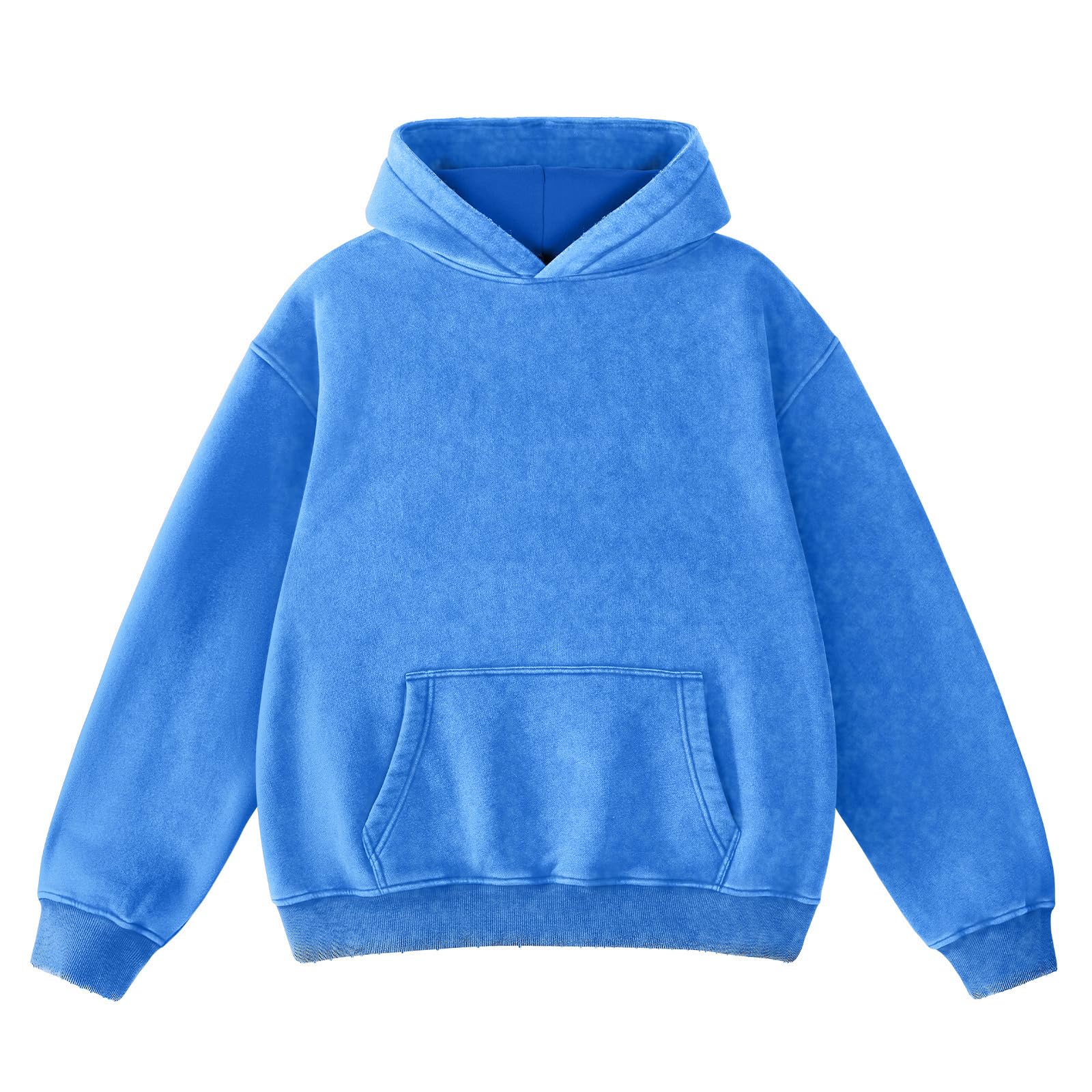 FAIABLE Mens Hoodies Oversized Unisex Acid Wash Hoodie Heavyweight Fleece Vintage Washed Distress Cotton Sweatshirt Men Women Couples Streetwear College Casual Fall Winter Autumn 2025 Bright Blue