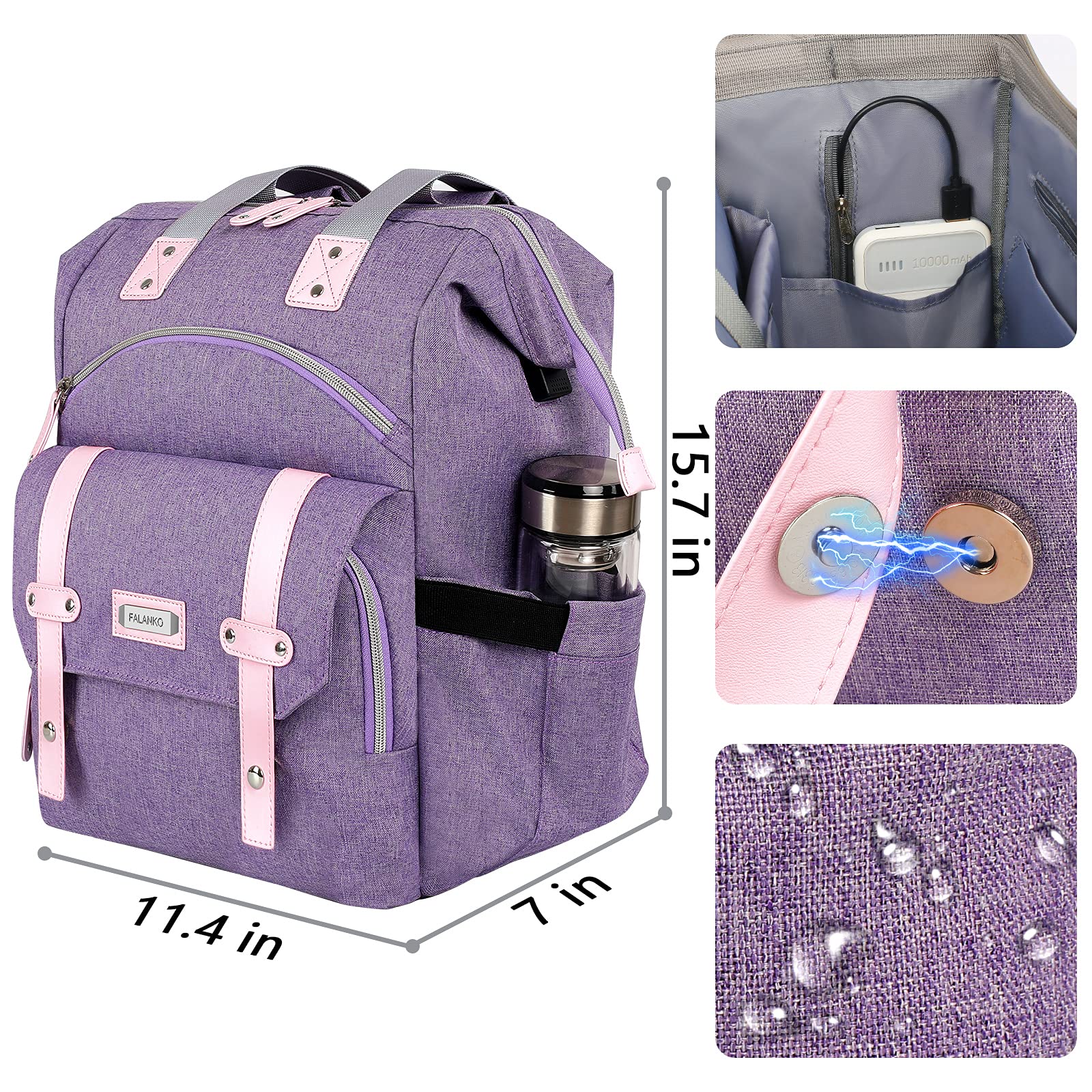 FALANKO Laptop Backpack for Women, Anti Theft Backpacks with USB Charging Port RFID Anti Theft Water Resistant,Wide Top Open Work Teacher College Travel Computer Bag for Woman Fits 15.6 Inch Laptop