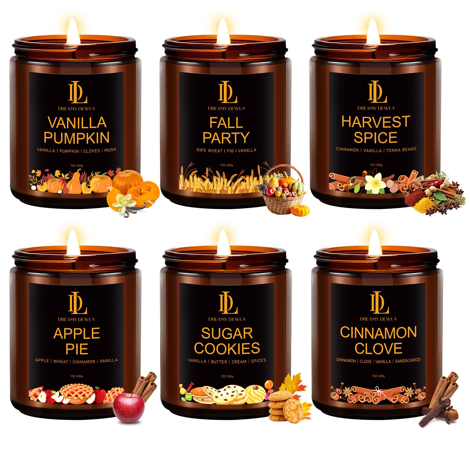 Fall Candle Set, Fall Scented Candles for Home, 6 Pack Soy Candle Set, Autumn Gifts for Women Men, Autumn Scents of Vanilla Pumpkin/Cinnamon Clove/Apple Pie/Harvest Spice/Sugar Cookies/Fall Party