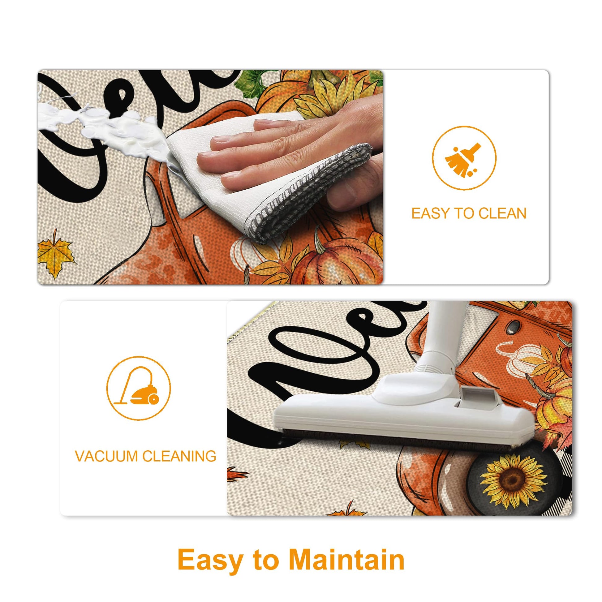 • 【Occasion】 The fall pumpkin entryway rug not only can be suitable for back door, front door, kitchen, garage, but also suitable for bedroom, laundry room, living room, office, etc.