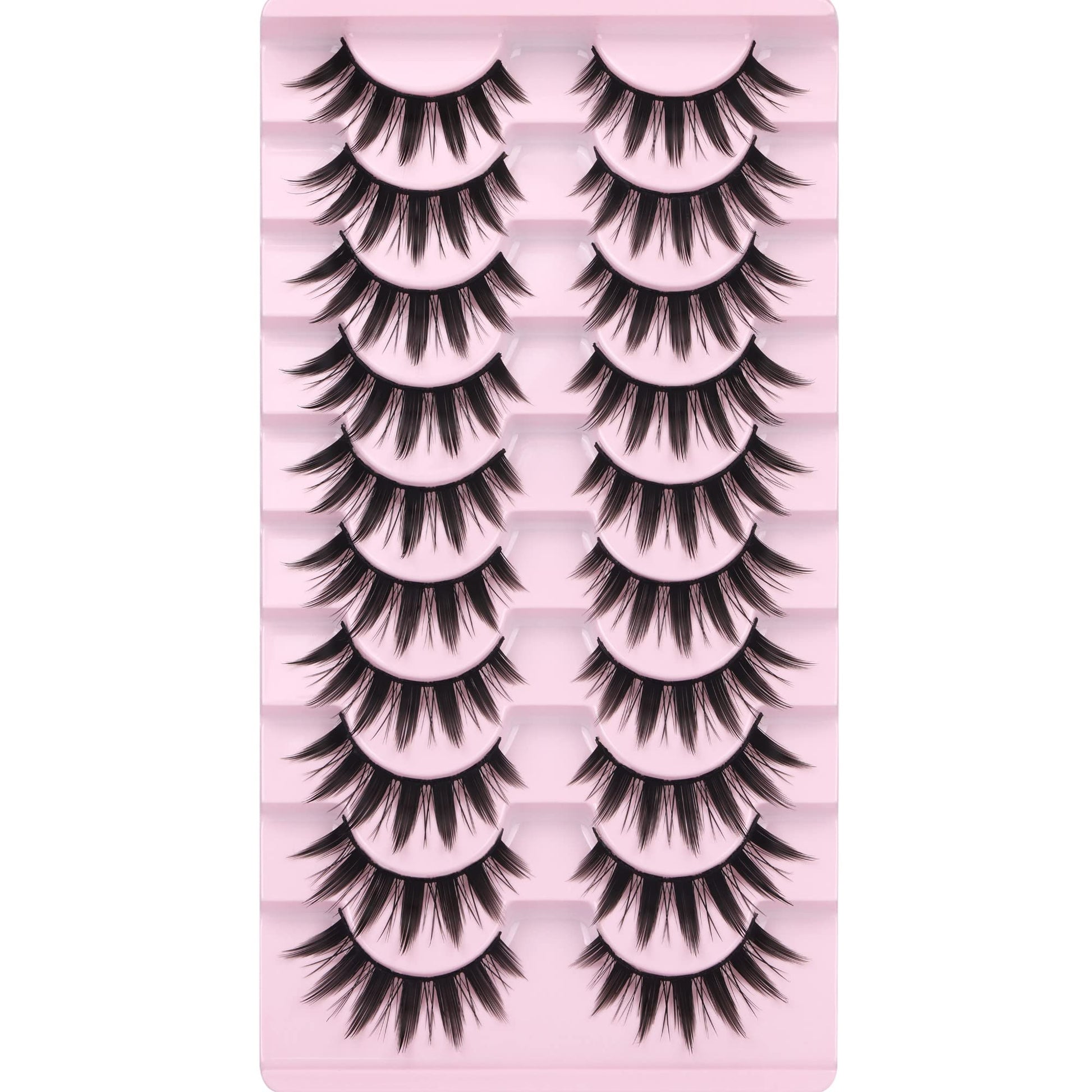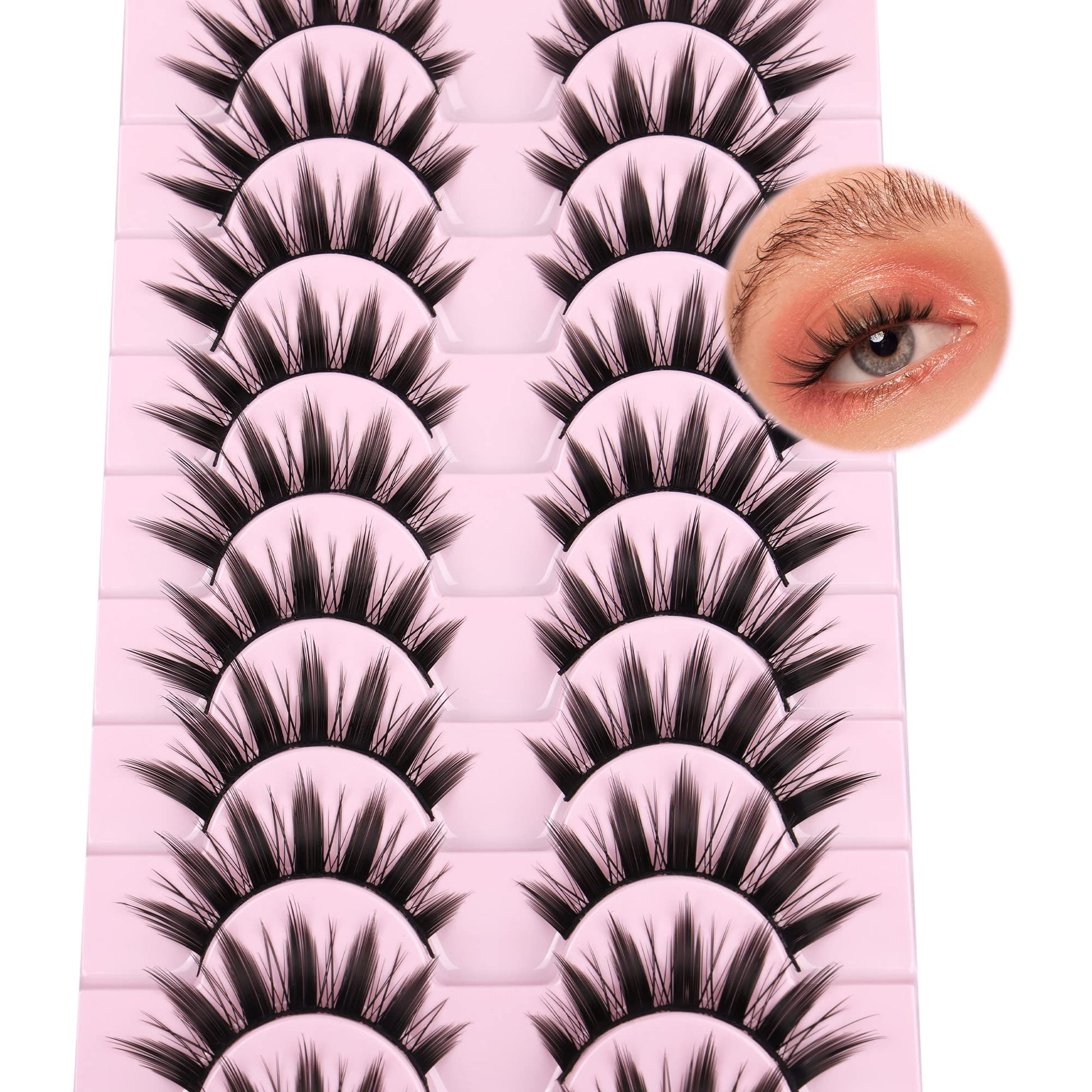 False Eyelashes 10 Pairs Manga Lashes Japanese Style Anime Thick Cosplay Lashes Natural Look 16MM Spiky 8D Wispy Faux Mink Lashes Full Strip Doll Lashes by FANXITON