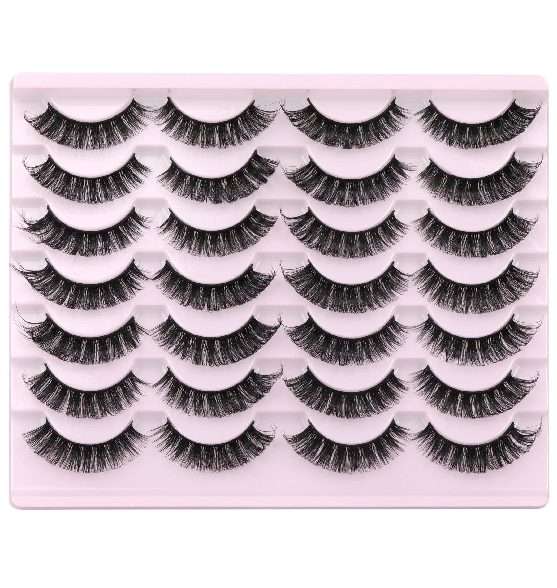 False Eyelashes Russian Strip Lashes Volume Fake Eyelashes Extension D-Curly Wispy Handmade Soft Reusable 14 Pairs Lashes Pack