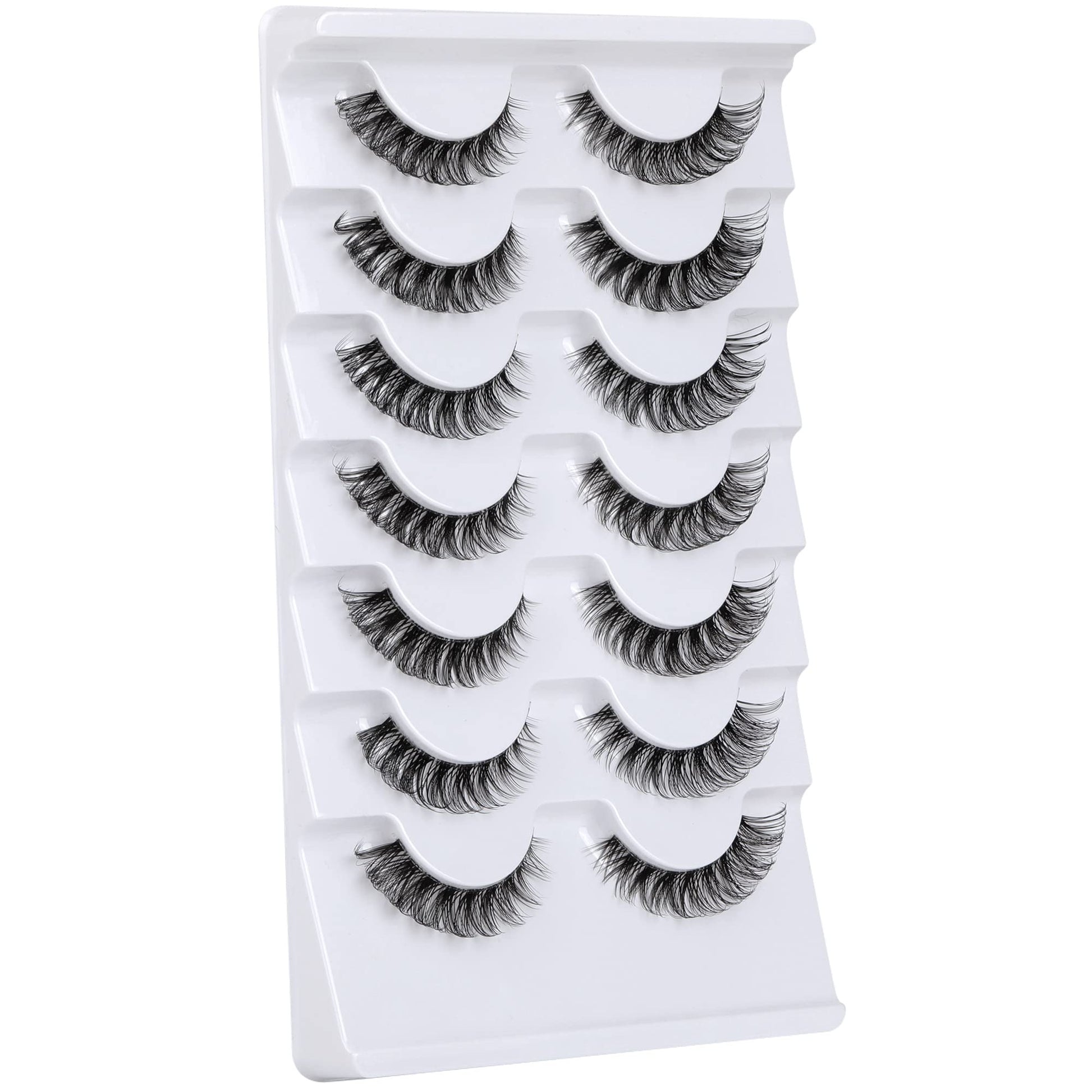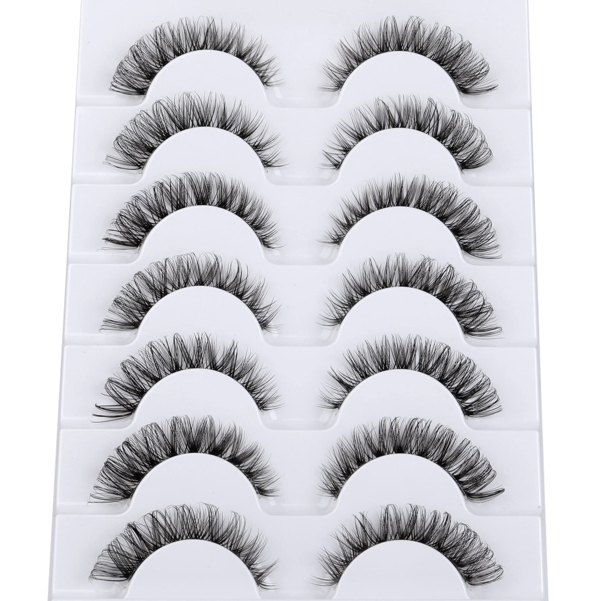 False Eyelashes Wispy Natural C Curl Strip Lashes Transparent Lash Bands Fluffy Cat Eye Lashes 7 Pairs by Yawamica