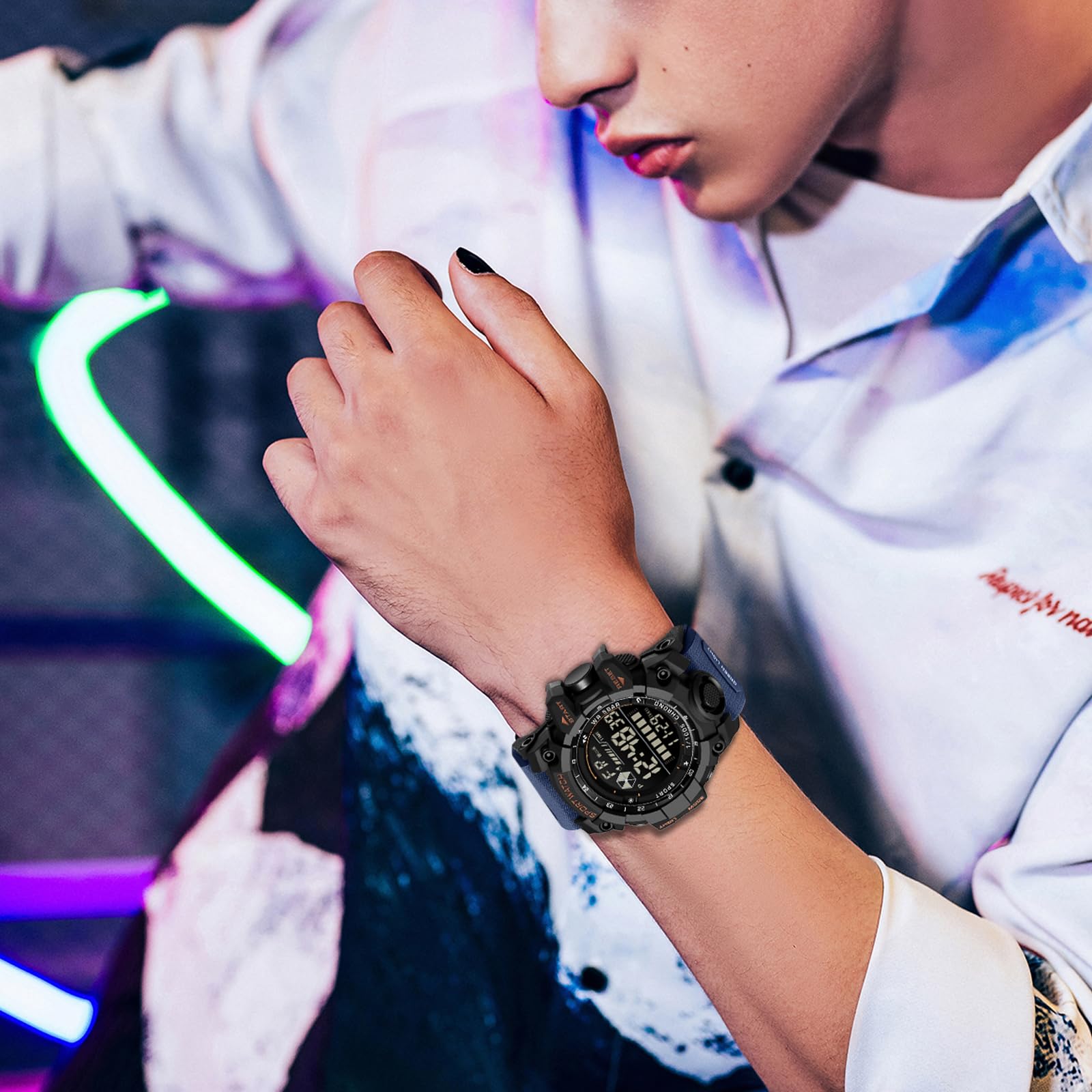 • Outdoor Camping Watch:Imported quartz movement, keep precise time.Soft and durable TPU watch band with the large dial design make it comfortable to wear and lead you to edge sport fashion. Crafted with ABS case and scratch-resistant resin glass, this digital sports watch is built to endure tough environments.