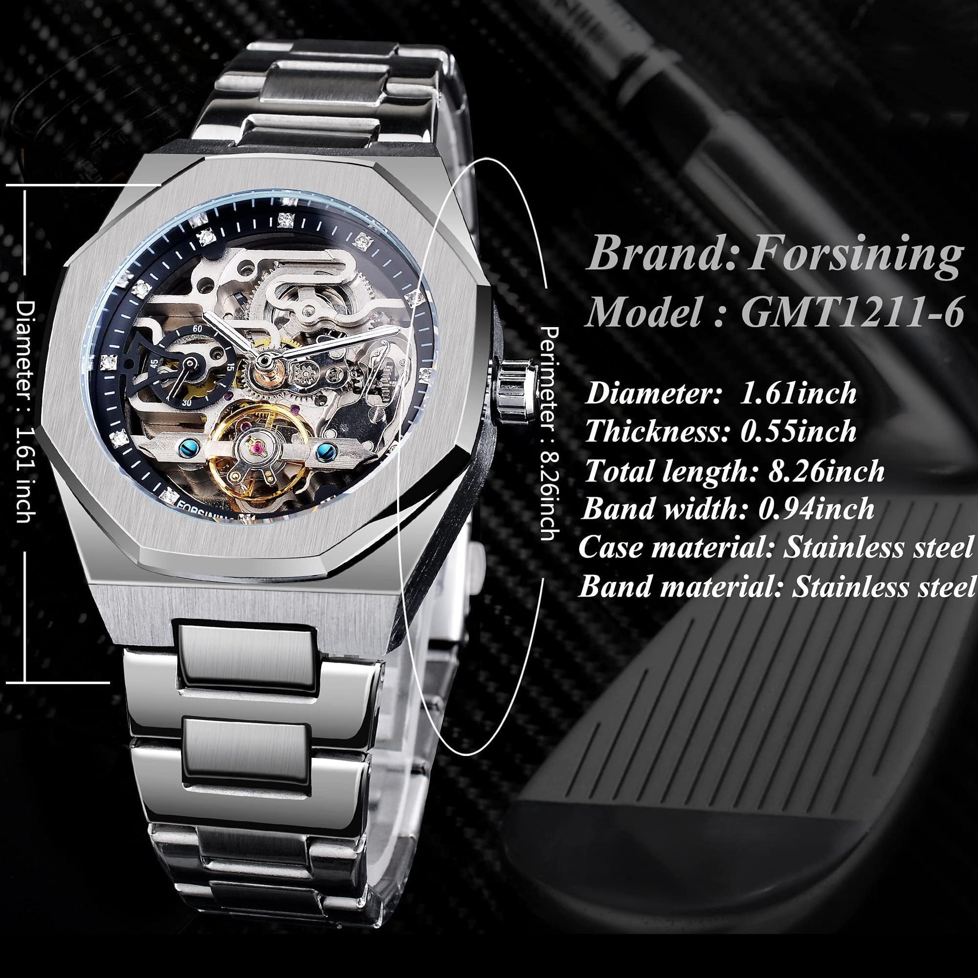FANMIS Mens Skeleton Watches Luxury Automatic Watch with Stainless Steel Bracelet Wrist Watch (Silver Black)