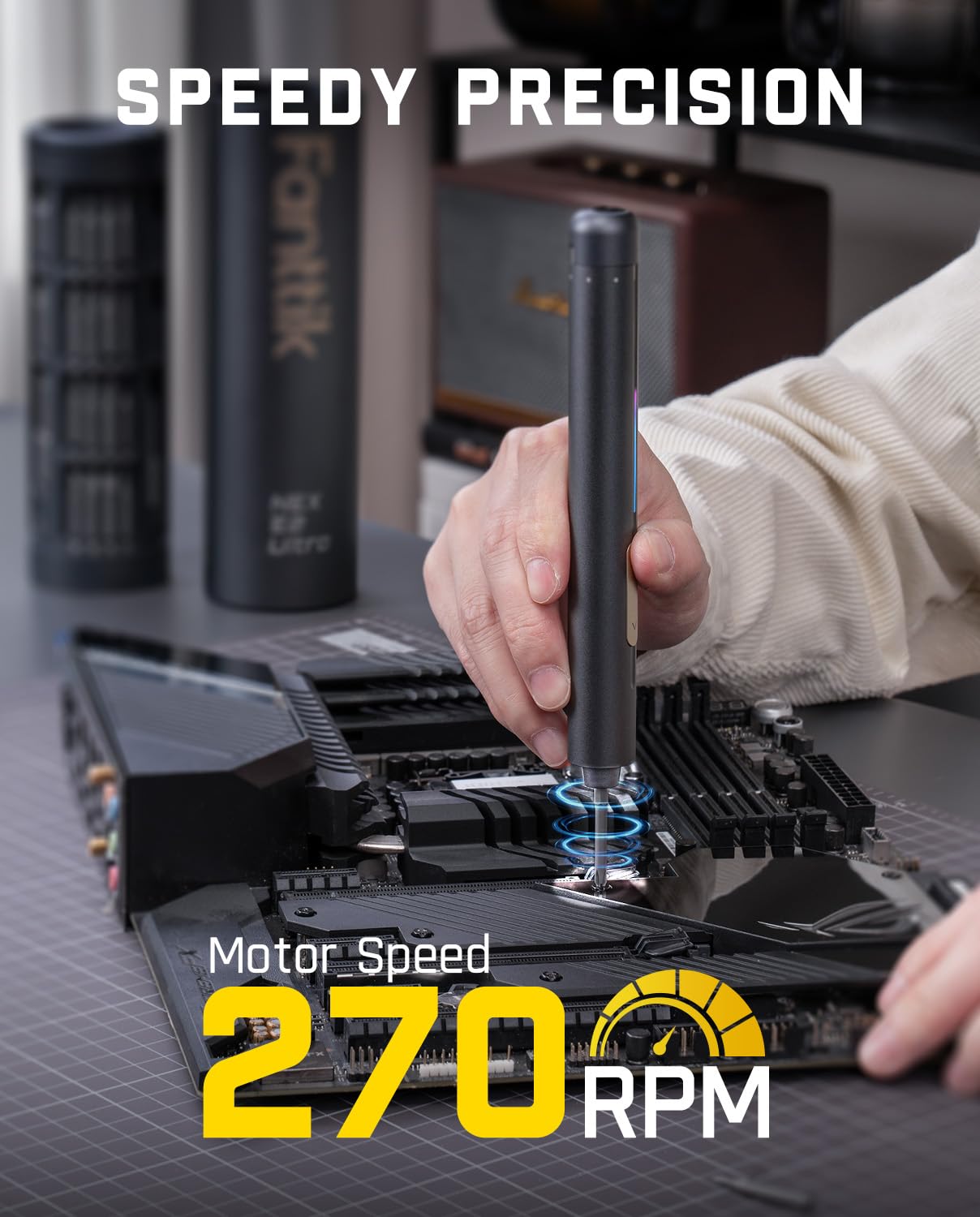 • Powerful Torque, Precise Control: With up to 0.6N.m torque and a 270RPM motor, the Fanttik NEX E2 Ultra makes precision repairs effortless. 5 gear torque adjustment (0.05/0.1/0.2/0.4/0.6N.m) ensures quick assembly without damaging delicate devices. Perfect for tablets, phones, watches, laptops, and small appliances.