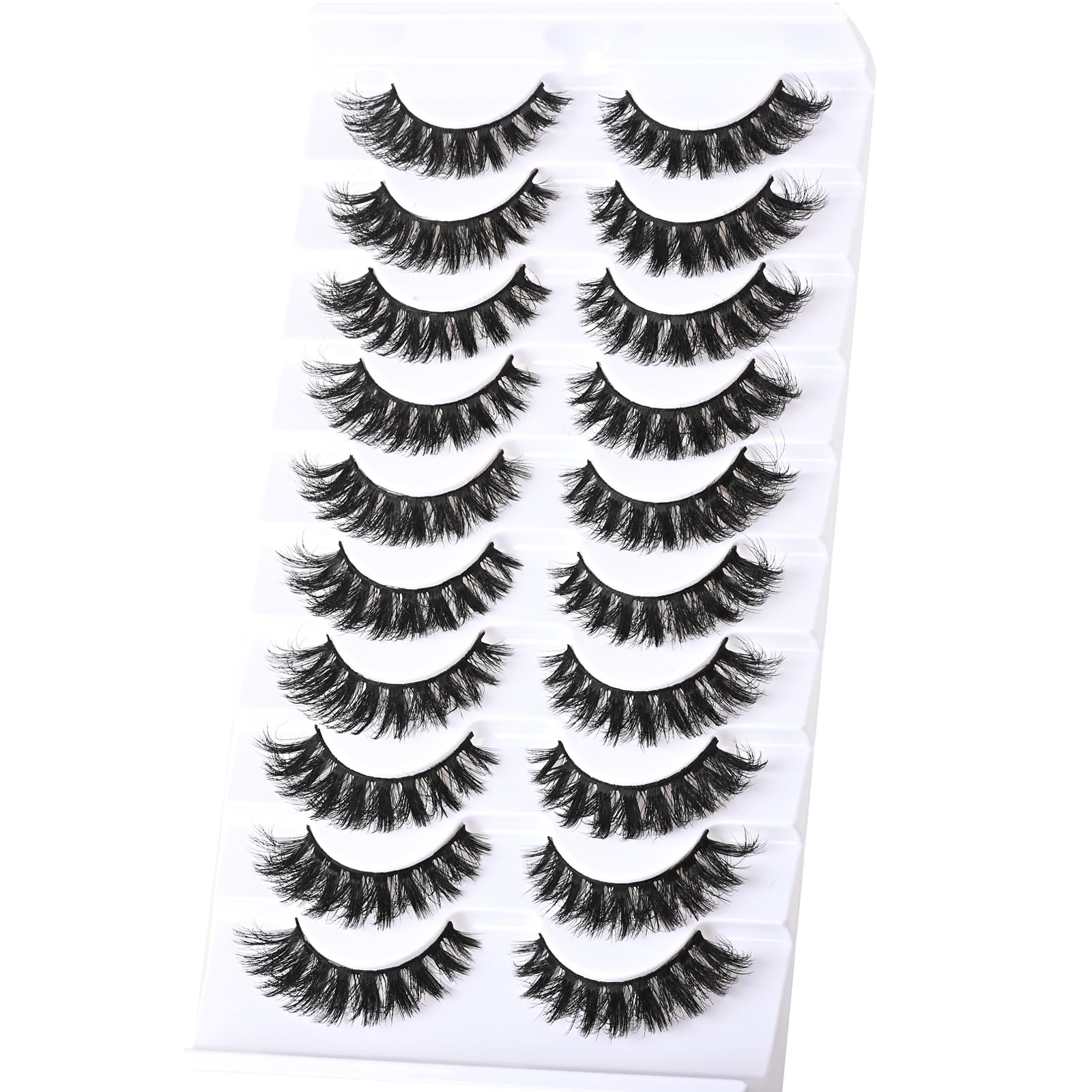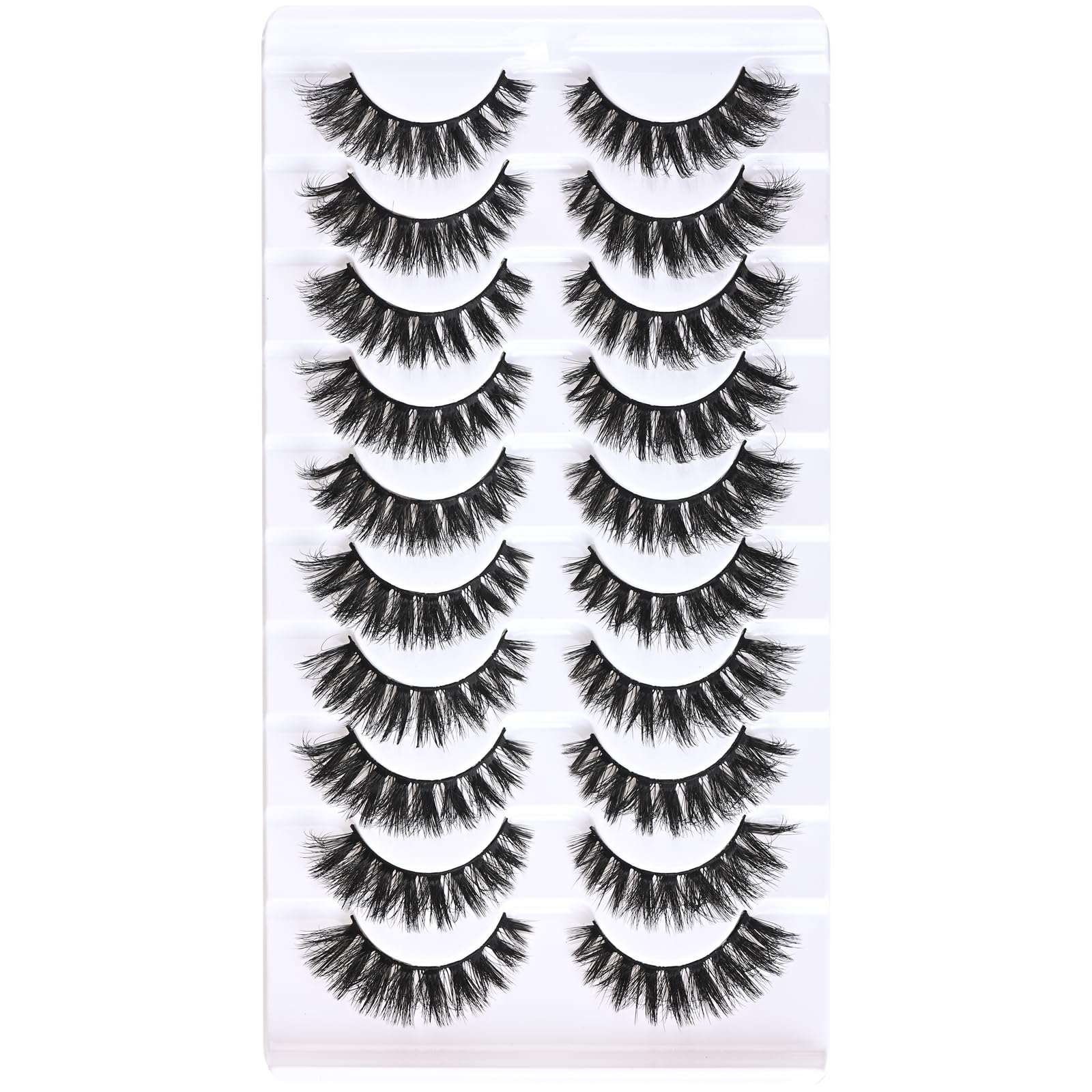 FARRED Mink Lashes Short Fluffy Eyelashes Wispy Natural Eyelash Pack Full Volume Lash Strips 10 Pairs Wispies Fake Strip Lashes Natural Look False Eye Lash Russian Looking for Everyday Makeup