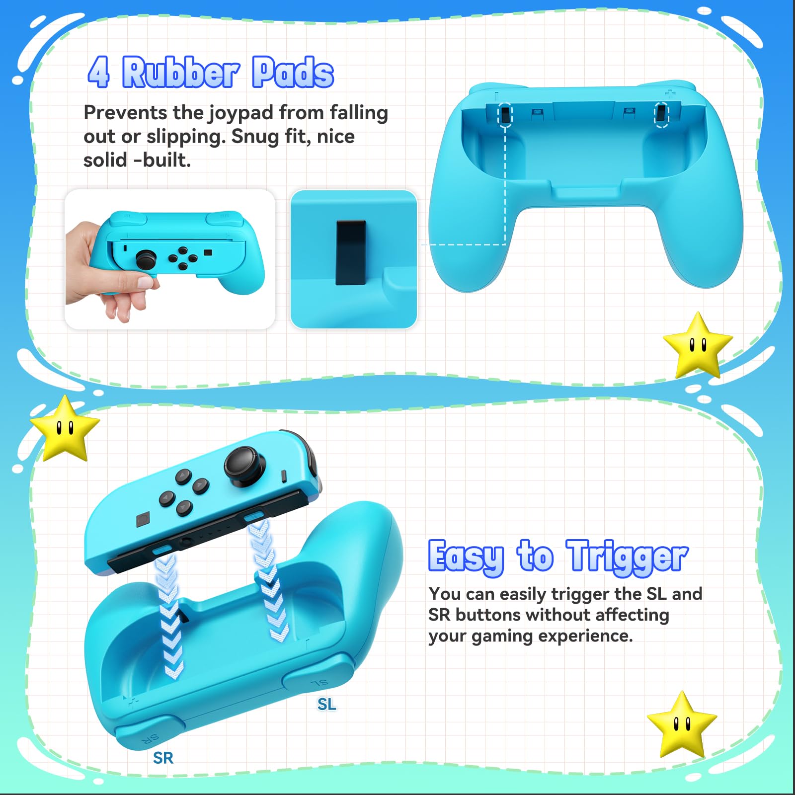 • FASTSNAIL EXCLUSIVE MATERIALS - FASTSNAIL grips made of exclusive materials, with premium rubber non-slip matte surface for excellent grip. DIFFERENT with the other grips on Amazon. Scratch free, attractive appearance, touch is the best. The grip is also compatible with OLED model for joy cons.