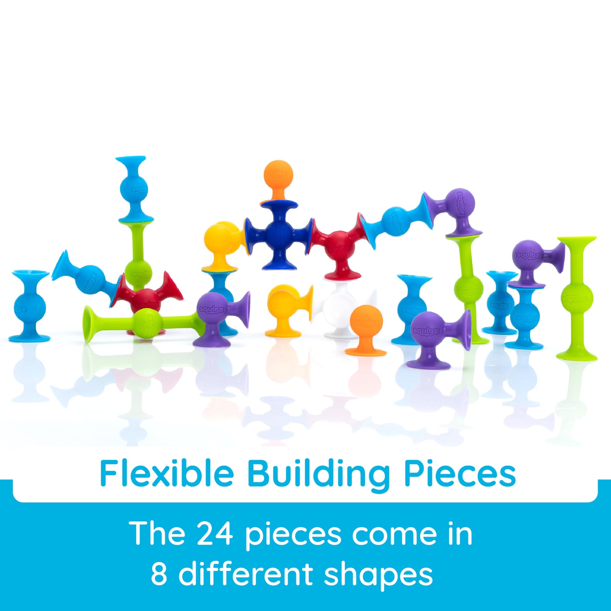 Fat Brain Toys Squigz Starter Set, 24 Piece Suction Bath Toys, Sensory Toys for Kids 3 and Up