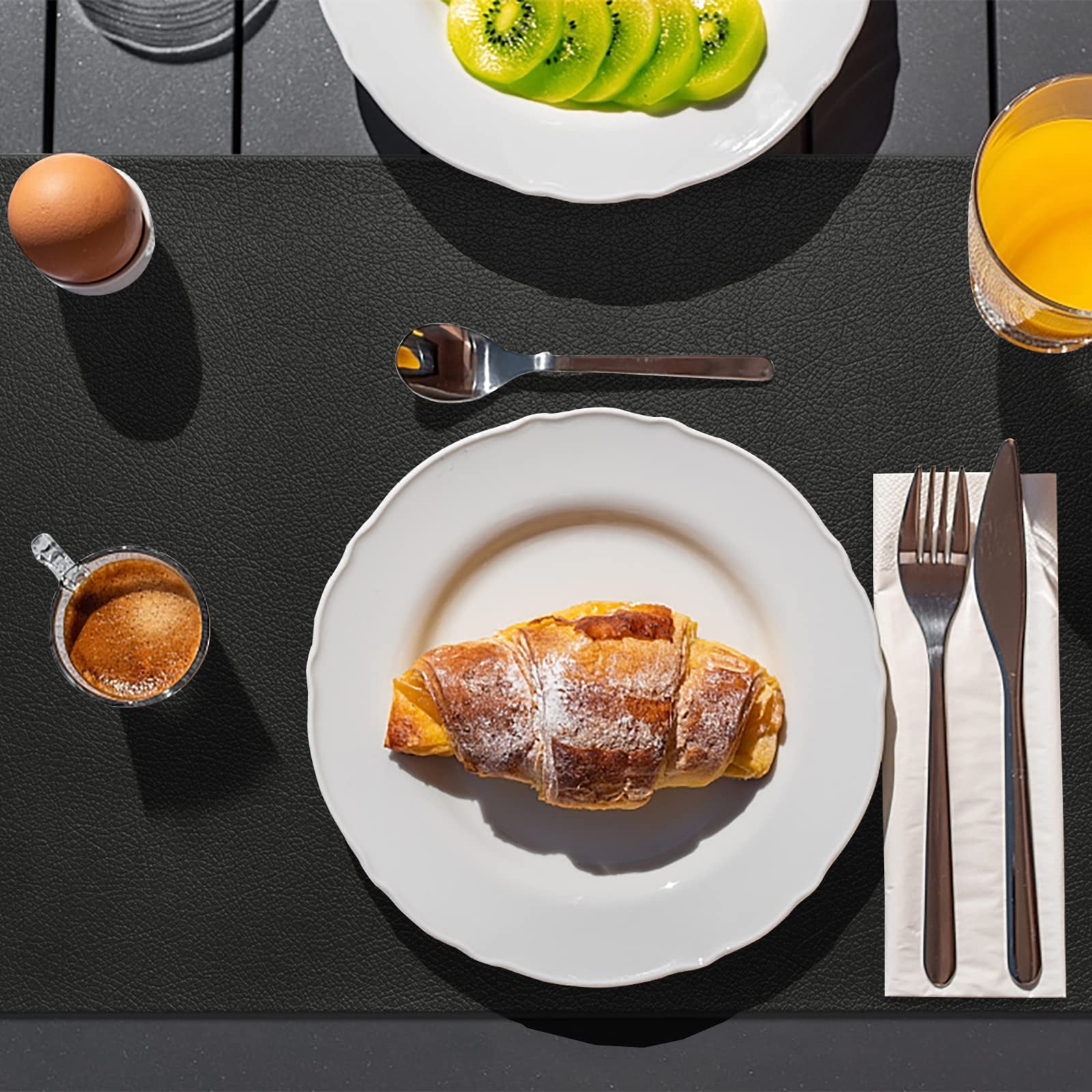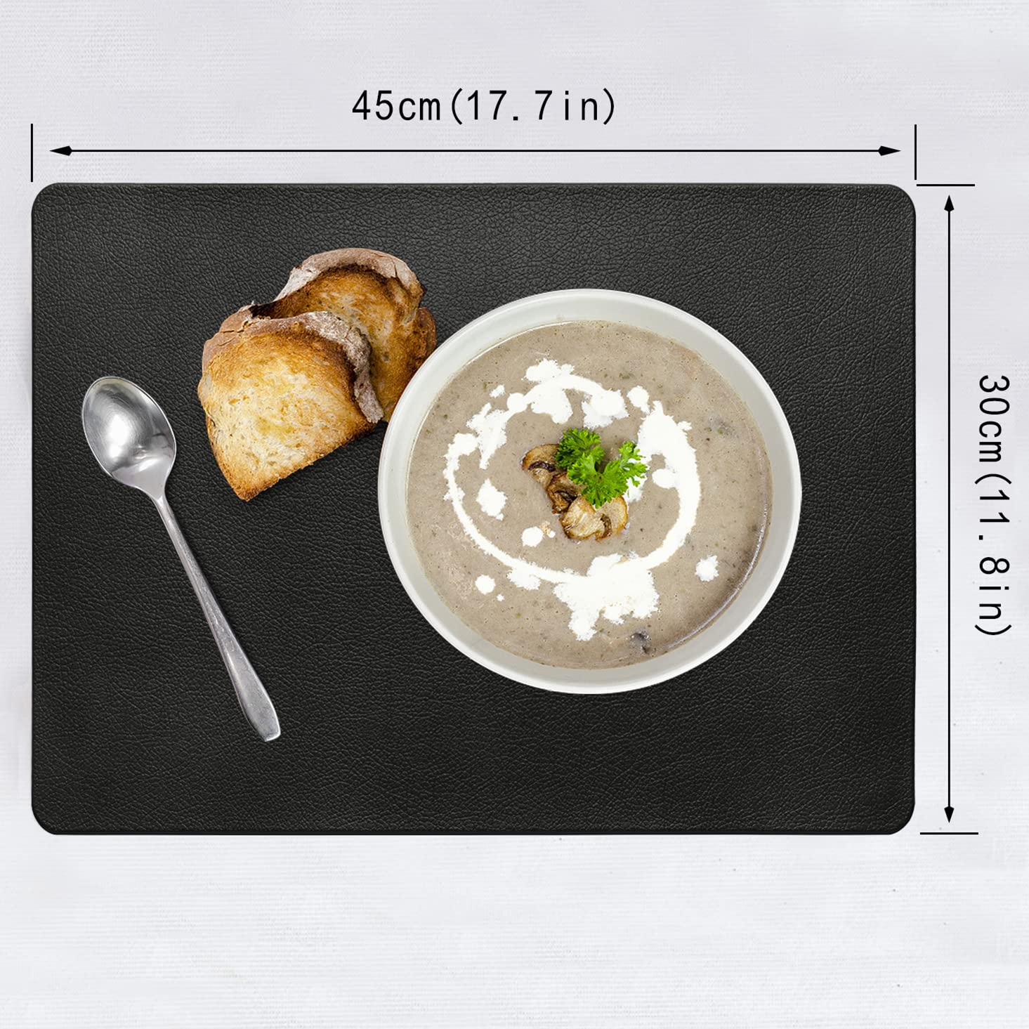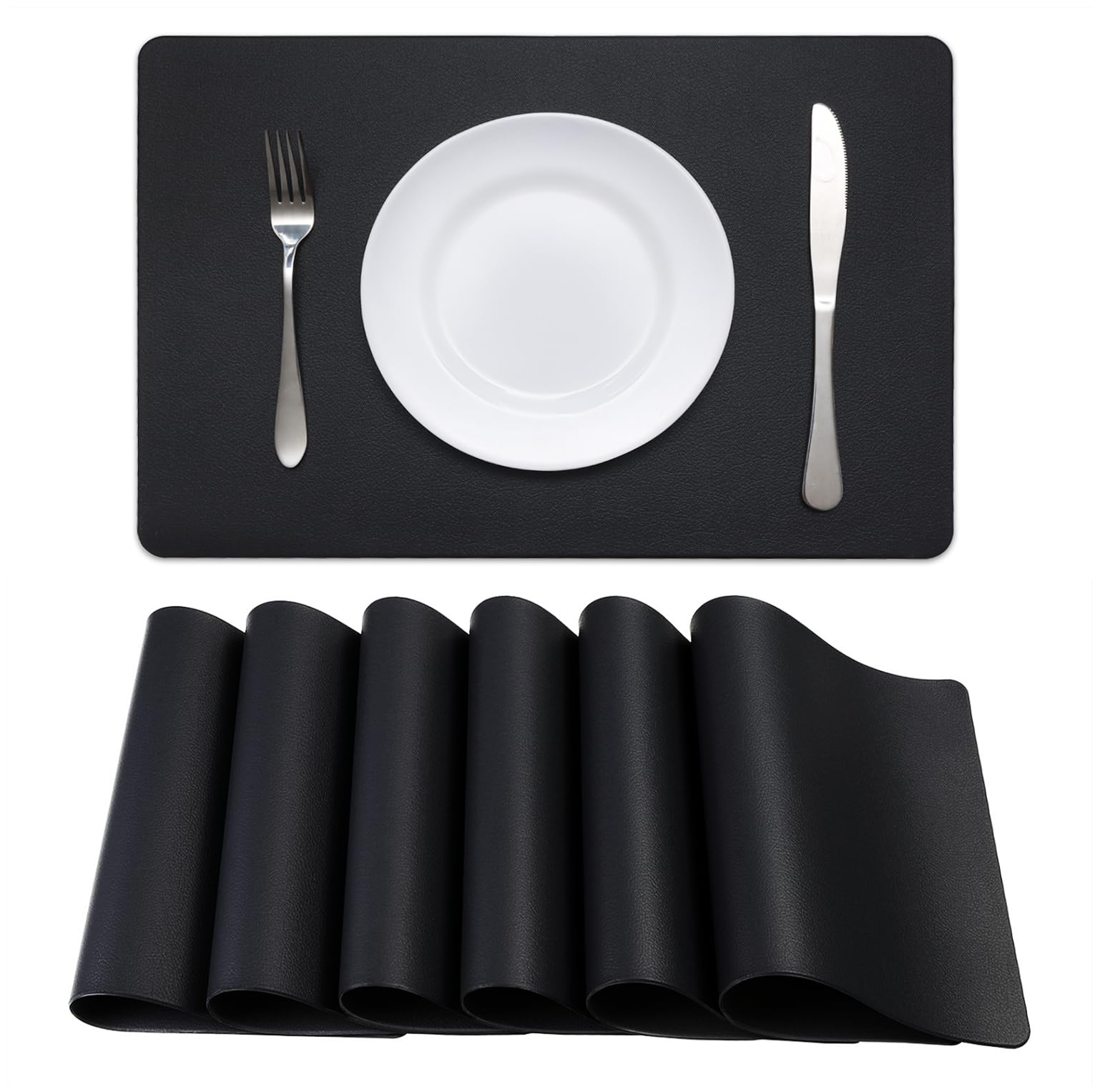 Details: Faux Leather Placemats HeloHo Black Table Place Mats Set of 6 Waterproof Oilproof Heat Stain Resistant Placemats Washable Wipeable Placemat for Kitchen Dining Table Decoration Indoor Outdoor