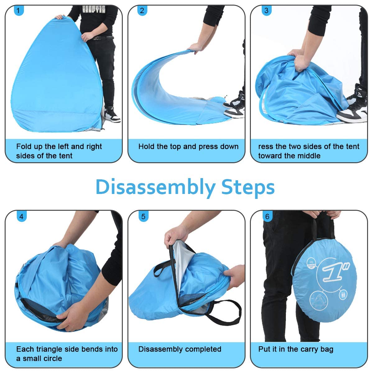 • Innovative Design - Sun shelters tent pop up automatically with no assembling required. Beach tent comes in a portable carrying bag so you can easily set up and fold back.