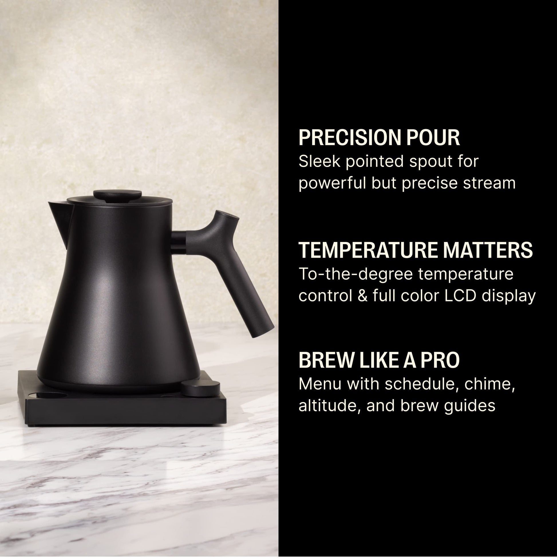 Fellow Corvo EKG Pro Electric Tea Kettle - Quick Heating, Precise Temperature Control Electric Kettle, Scheduling, Built-in Brew Timer for Boiling Water - Matte Black - 0.9 Liter