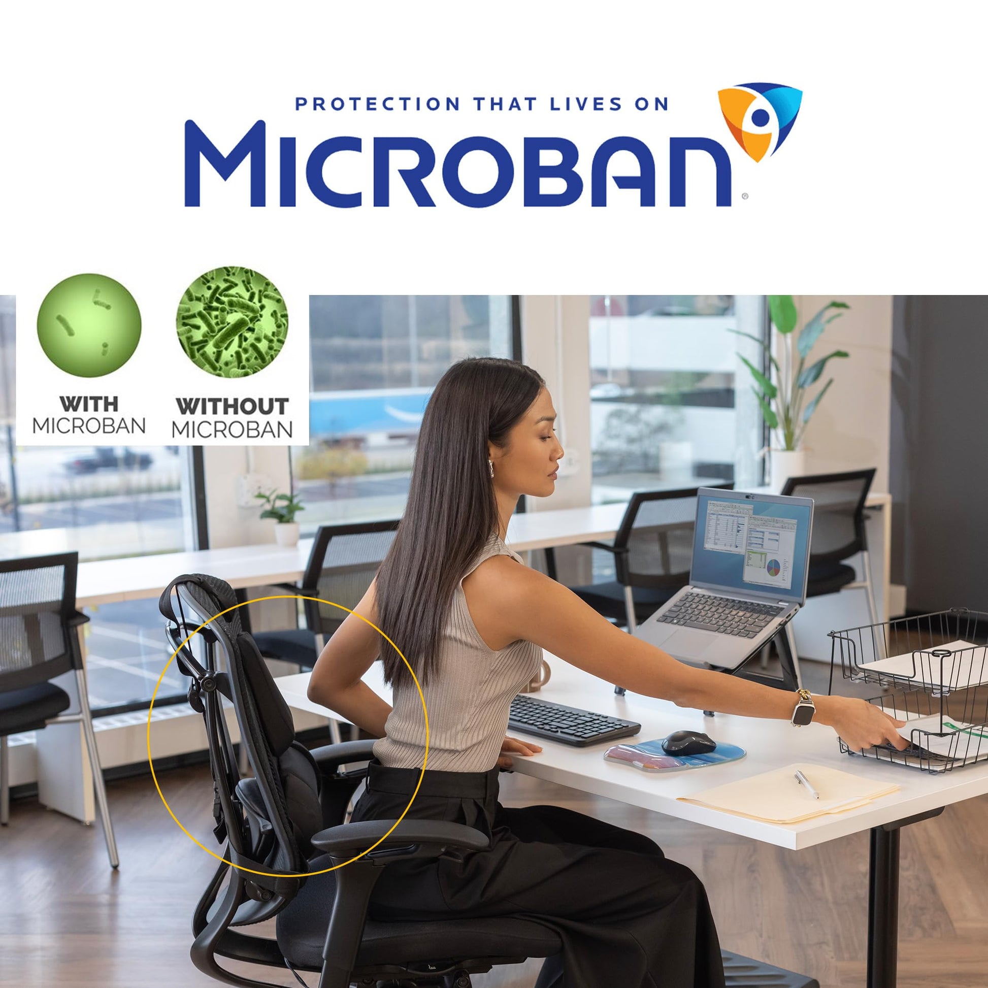 Details: Professional back support allows for optimal working comfort. A 2-tiered support system features a mid spinal support for good posture, and a lower lumbar support that conforms to natural body curvature. Tri-Tachment system eliminates the need for readjustment. Memory foam cushions self-adjusts for custom support. Fits most office chairs.