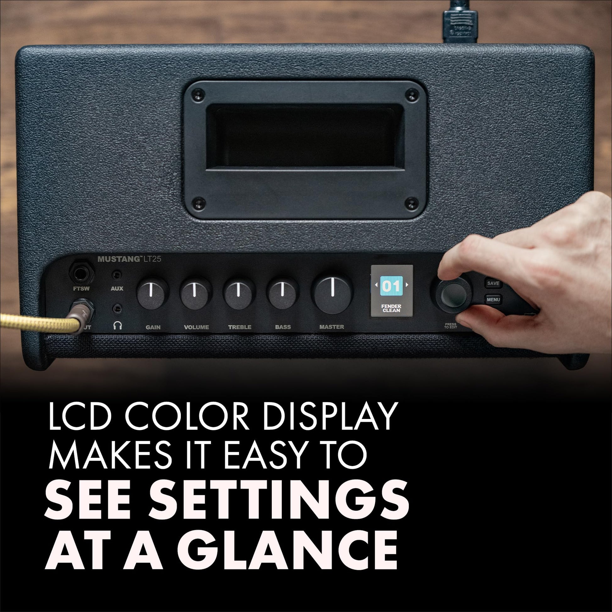 • The Fender Mustang LT25 Guitar Amplifier features 25 watts, 12.75Hx14.5Wx8.25D inches