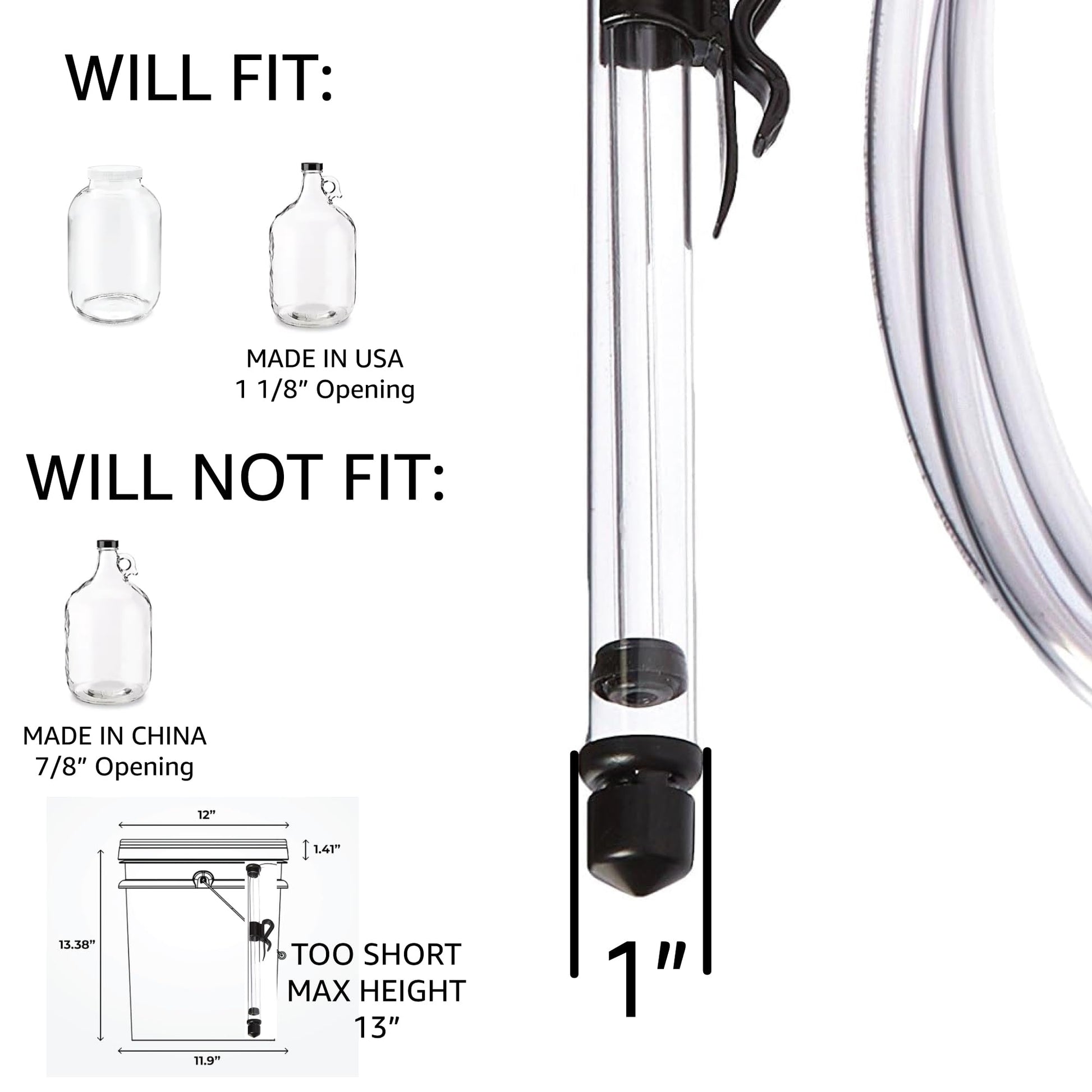 • 14' LONG MINI AUTO SIPHON: Will fit into openings as small as 1' or 25mm. Please Measure your container to confirm fitment in Height and size of the opening - Designed for small batch brewing: The Fermtech Auto-Siphon Mini is the ideal tool for transferring liquids in small batches, such as beer, tea, or kombucha. It’s great for use with wine accessories, a wine-making kit, or a fermentation kit. Its compact size is ideal for hobbyists or anyone working with limited quantities. The siphon ensures smooth liquid movement between containers, minimizing spills and reducing waste during brewing, bottling, or fermentation tasks.