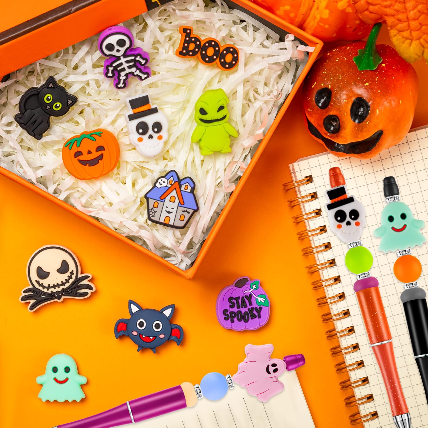 • 【HALLOWEEN SILICONE BEADS】You will receive 15pcs halloween beads for pens in different shapes, including pumpkin, ghost, skull, witch, cat and other shapes. Enough quantity to meet your DIY needs.