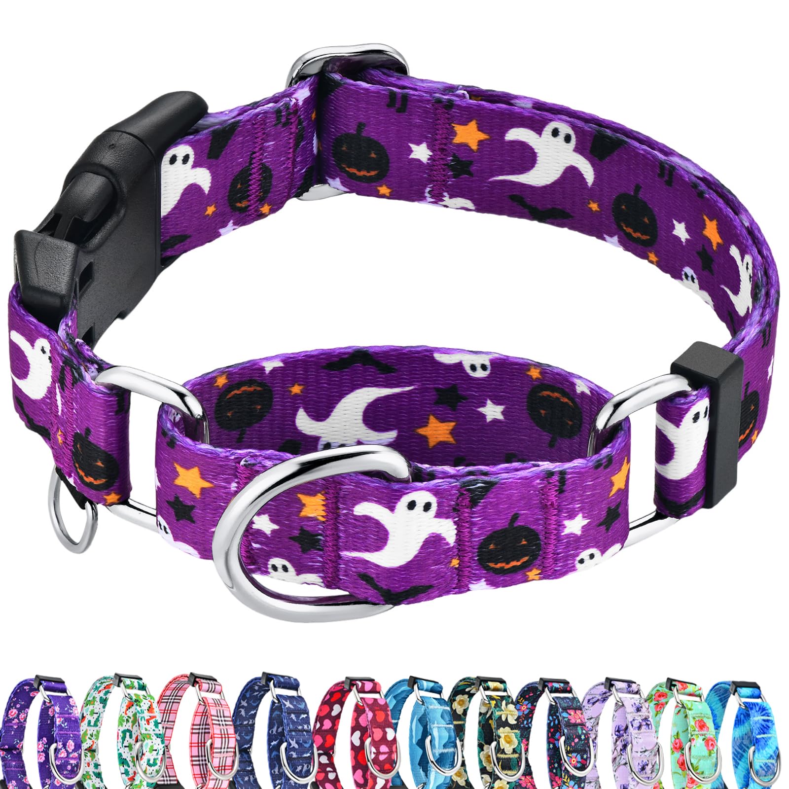 Fidohug Halloween Martingale Collar for Dogs with Buckle Adjustable Holiday Dog Collars (Purple Ghost, Medium)