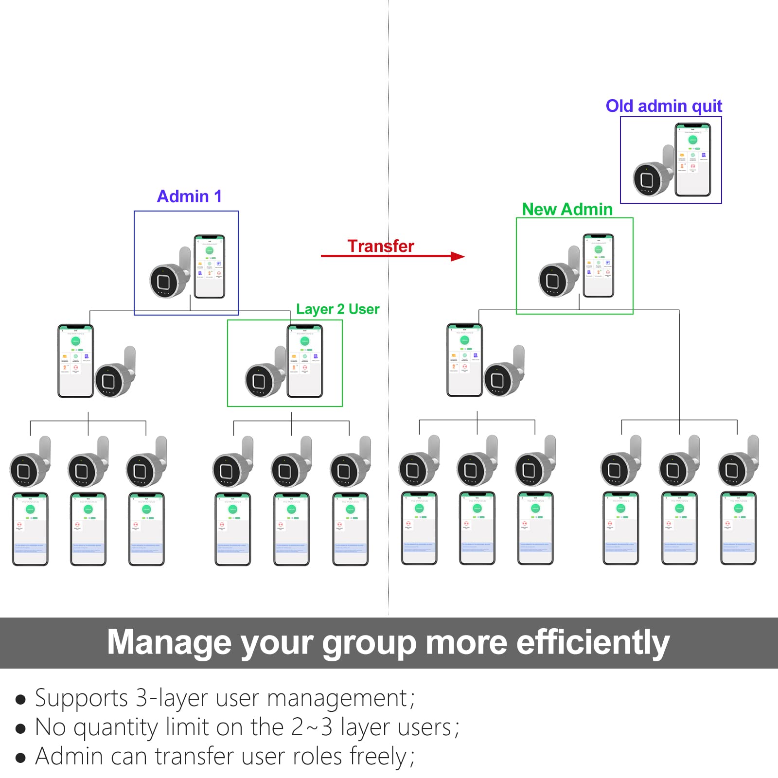 • 📱【Efficient group management】 Supports 3-layer user management. Via esmartlock app, administrators can set multiple team leaders, who can manage multiple members; If the administrator exits the group, the role can be transferred to other team leader;