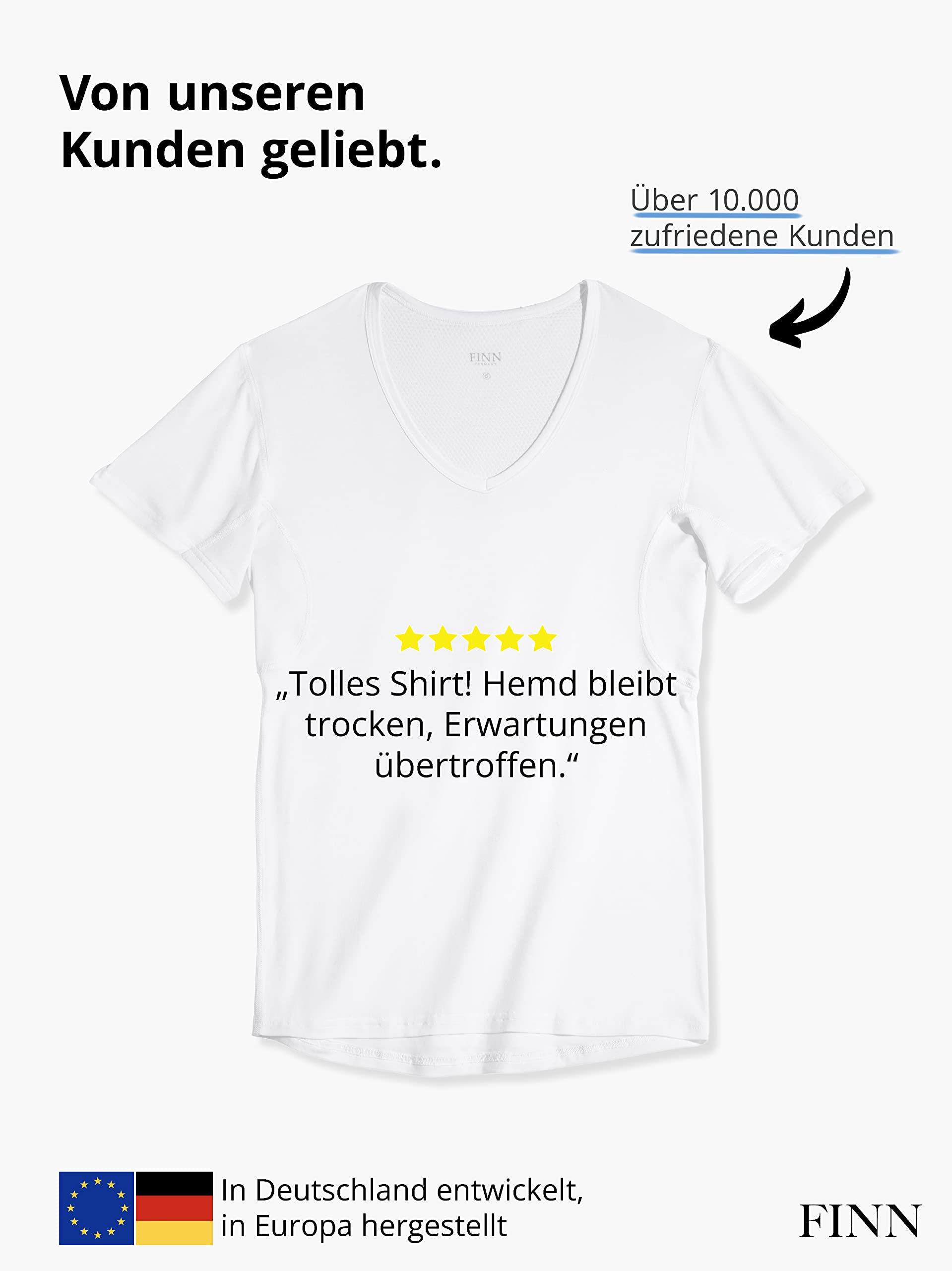 FINN Men's Anti-Sweat Shirt with V-Neck and Integrated Underarm Pads to Prevent Strong Sweating - Undershirt with Guaranteed Protection Against Sweat Stains and Sweat Odour