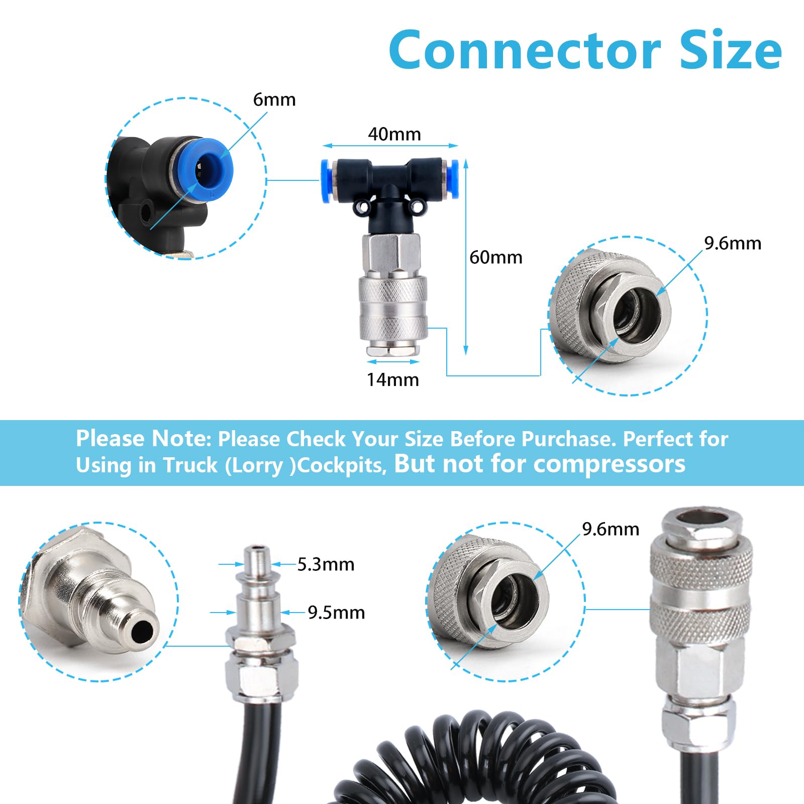 • Easy to Use: It fits the 1/4”(6mm) OD air hose in cabs. Without any tools, you can easy connect this truck air dust gun with the air hose(OD 6mm) in the truck