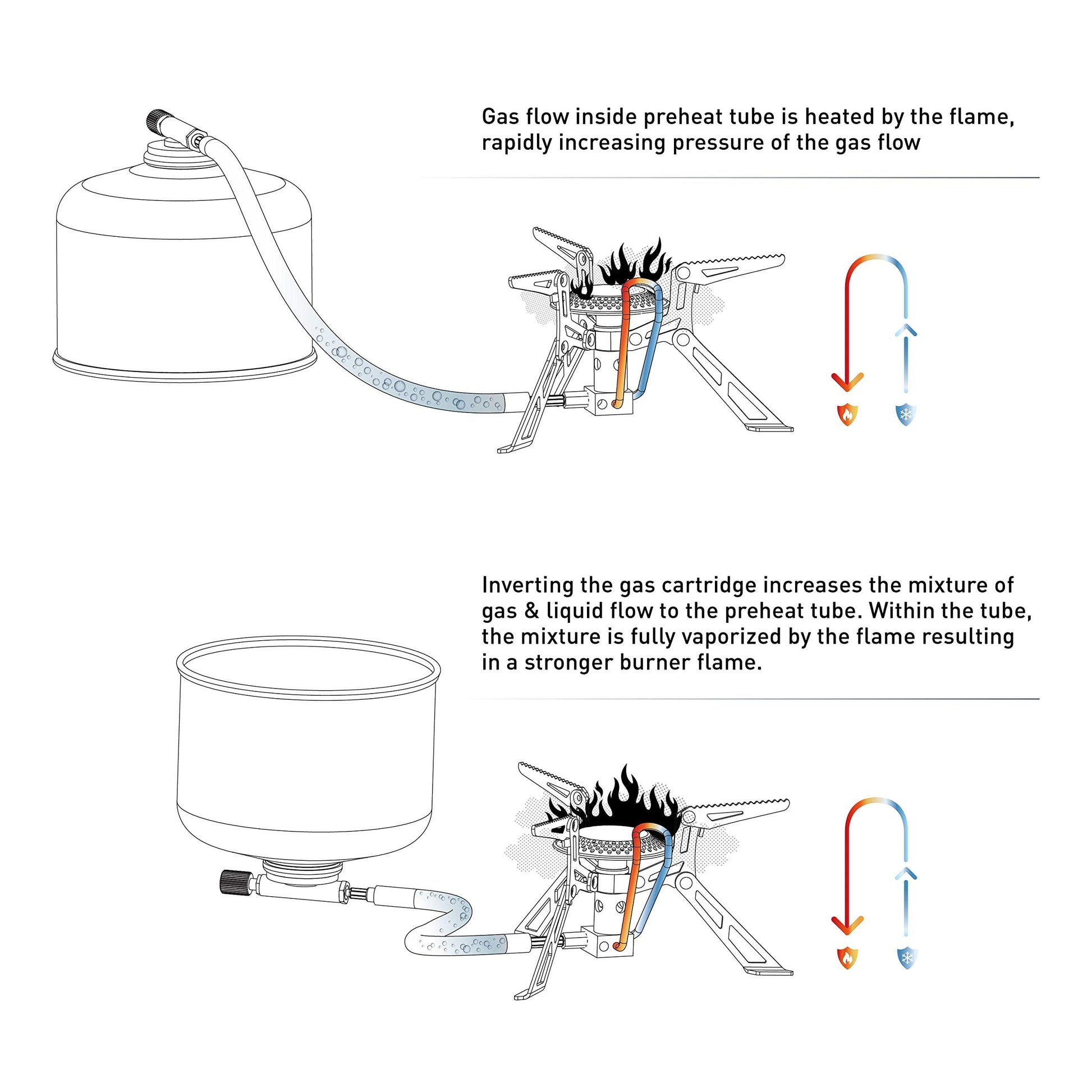 • ALL WEATHER: The remote canister cable design allows to invert the canister for excellent performance in cold weather conditions. The fuel pre-heat tube ensures high efficiency and prevents flame sputtering.