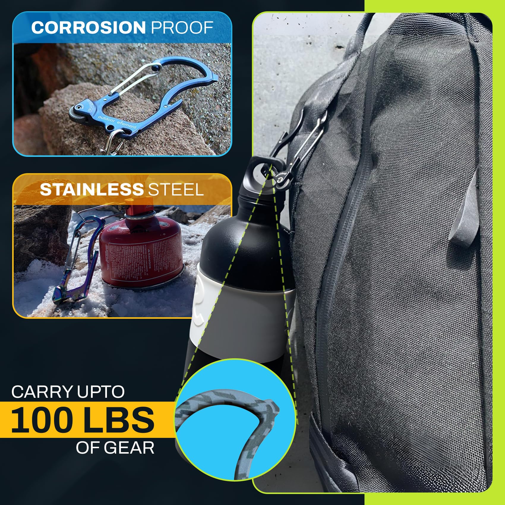 • DURABLE AND LONG LASTING: Stainless Steel body is rated to carry up to 100 lbs of gear. The ferro rod will last over 2,000 sparks.