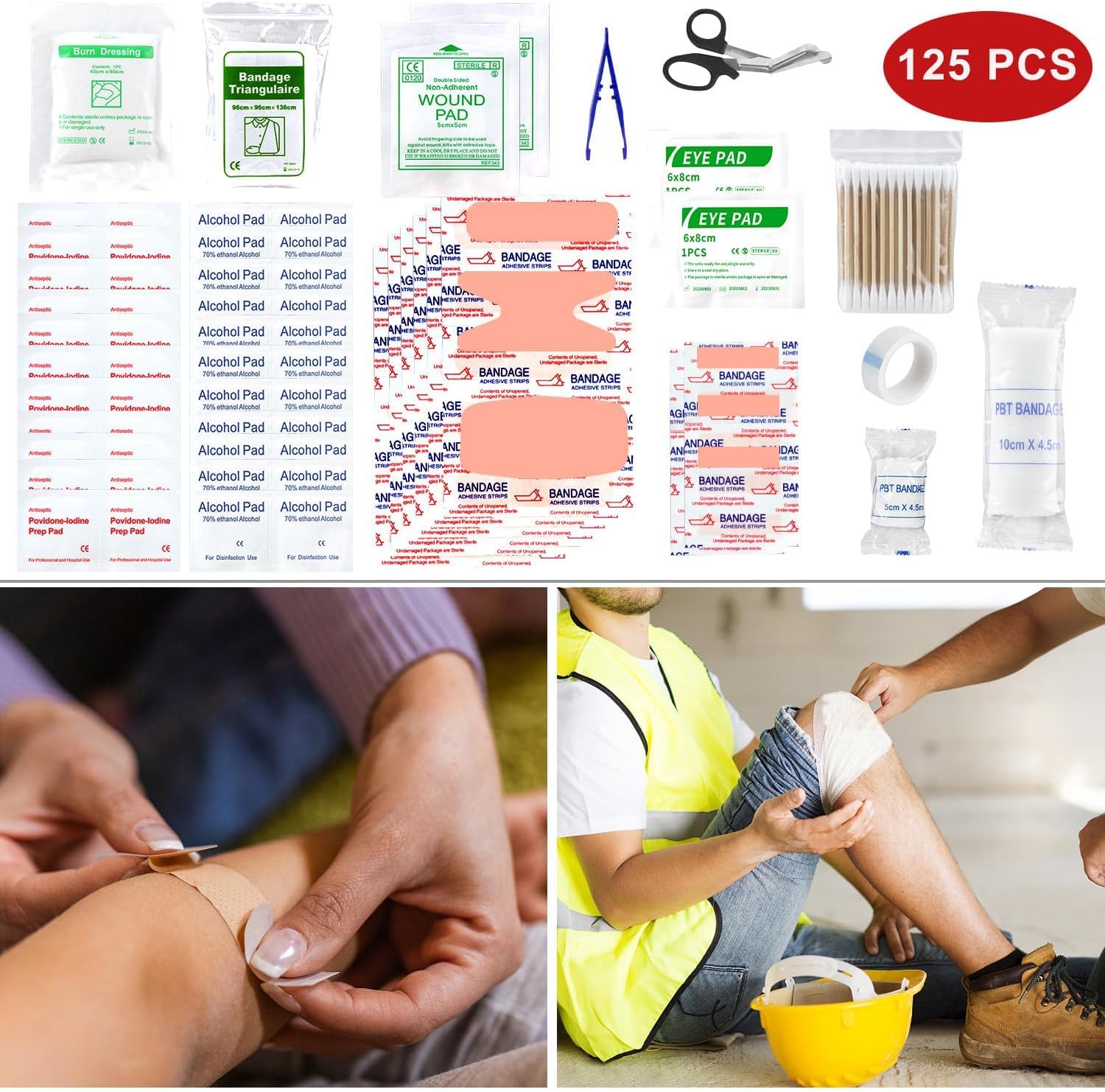 • ➤Professional Camping Kits – Get what your need in camping and other emergencies. This kit Includes: multi-function bracelet, fire starter, emergency blanket, flashlight(need AA battery), glow stick, 125 pcs first aid Kit, Tourniquet and fast bandage. All items can put in the upgrade bag.