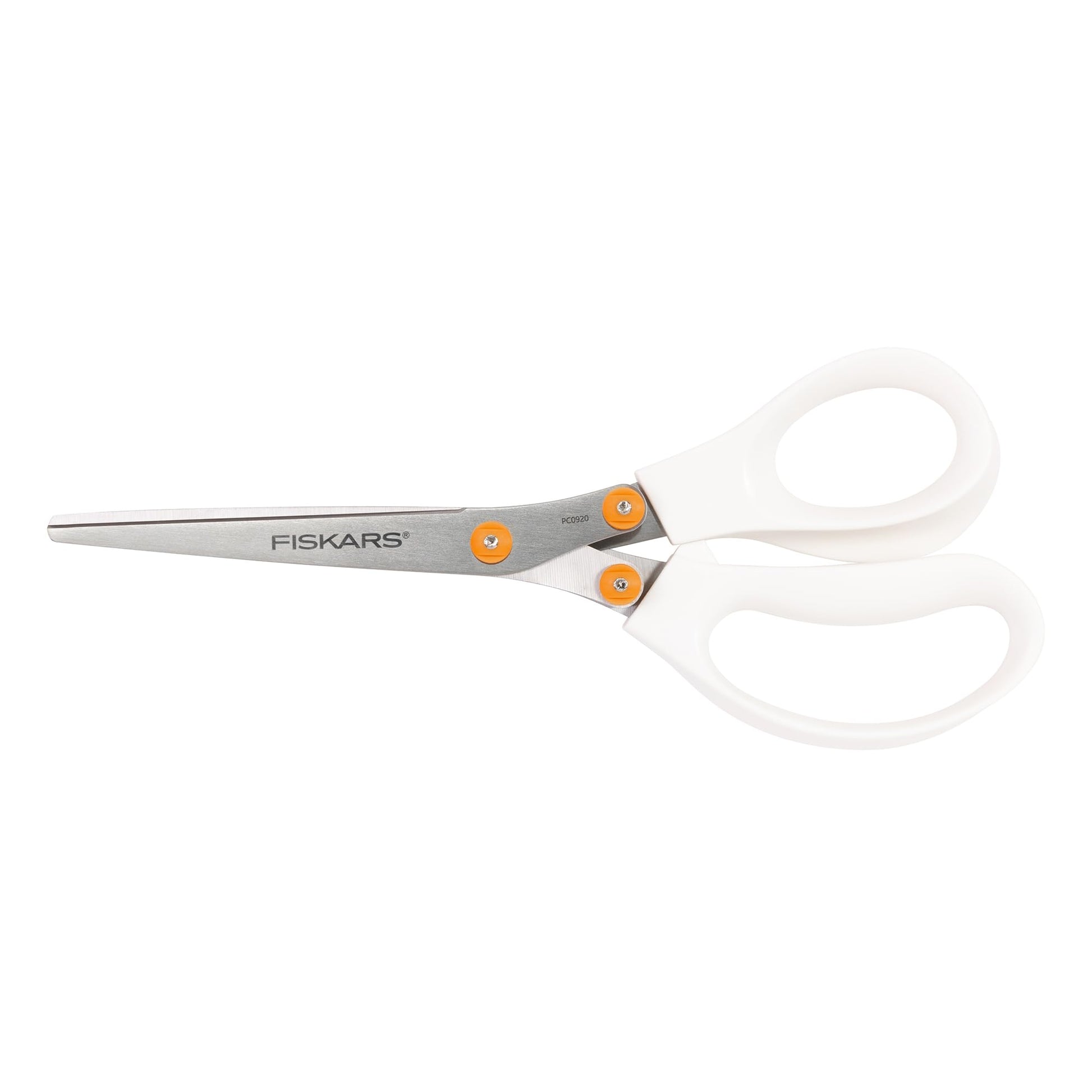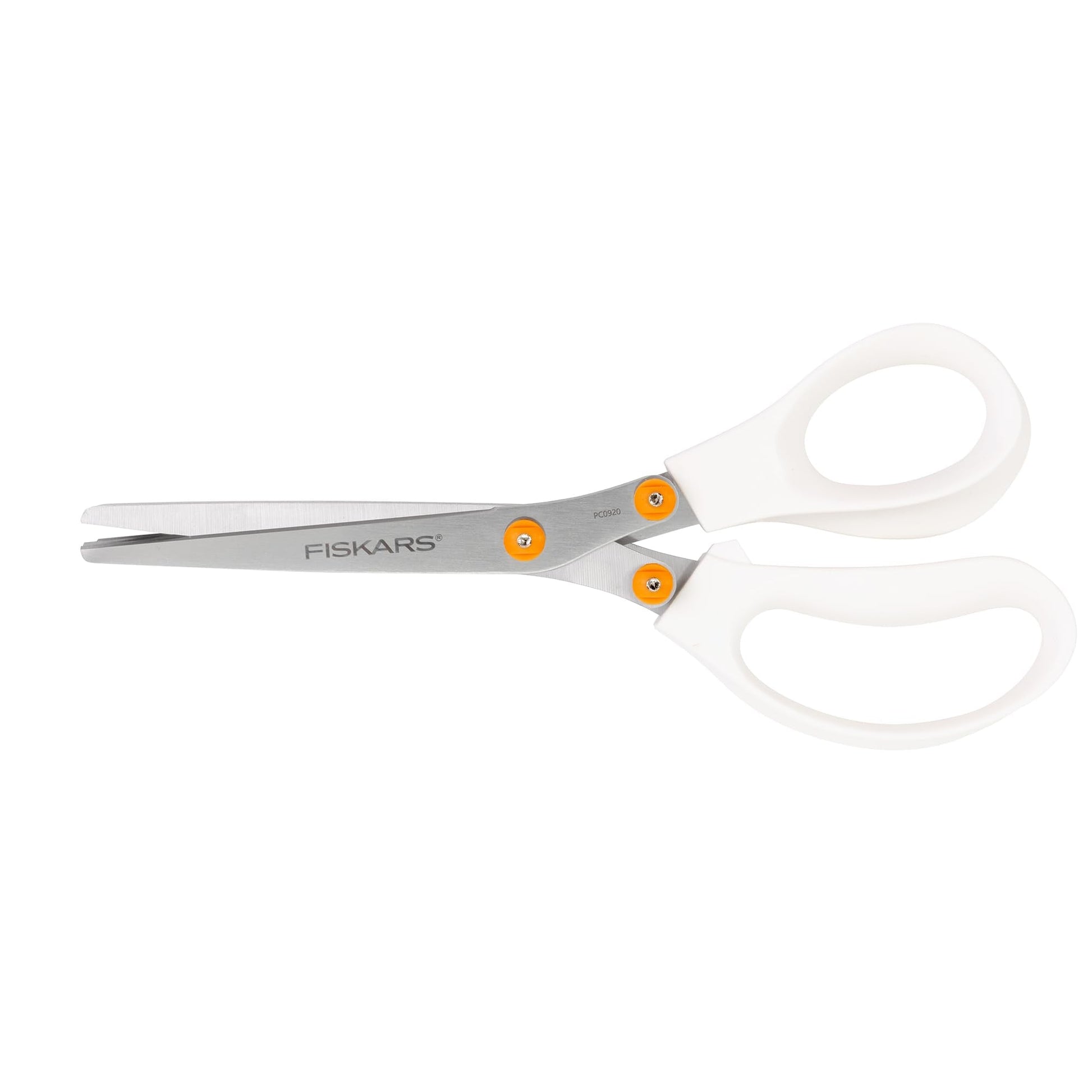 INCLUDES: (1) Fiskars Fringe Scissors in White/Orange; Lifetime Warranty