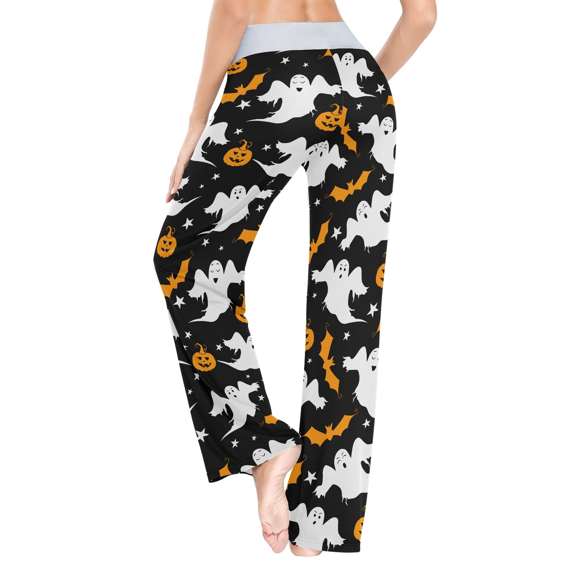 Fisyme Pumpkin Ghost Halloween Pajama Pants for Women Soft Comfy Pjs Bottoms Drawstring Wide Leg Lounge Jogger Yoga Sweat Pants Sleepwear