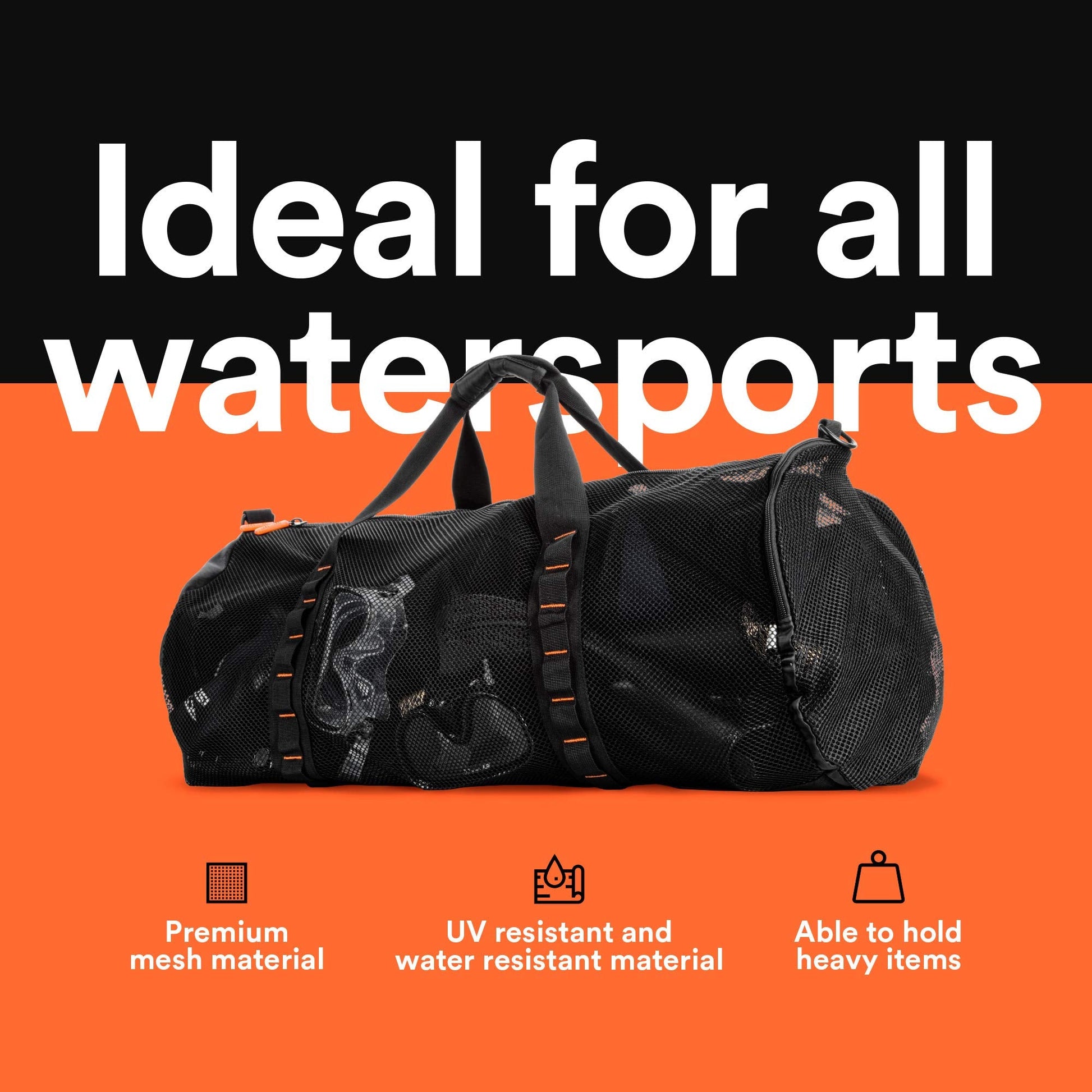 Fitdom 90L Large Mesh Duffle Bag for Scuba Dive or Snorkel Equipment. Best for Water Sports & Beach Activities like Swimming, Diving & Snorkeling. Perfect for Travel, Storage Swim Gym Gears & Balls