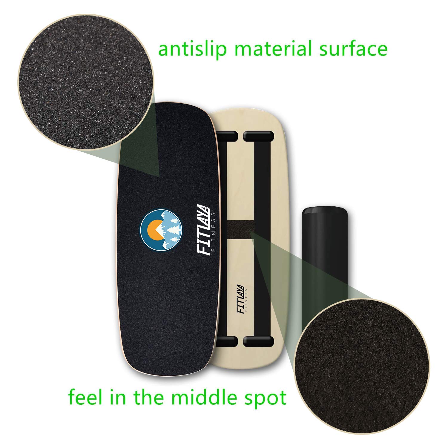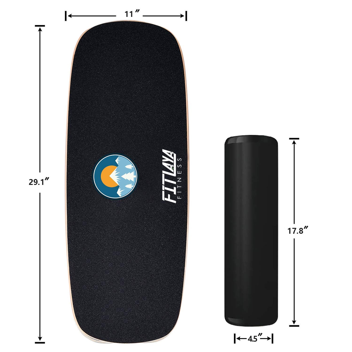 Details: Description: Wooden board dimension: 29.1'x11' Roller dimension: 17.8”x4.5” Fitlaya Fitness aims to provide valuable sports products to our customers and help them to lead a healthy lifestyle.