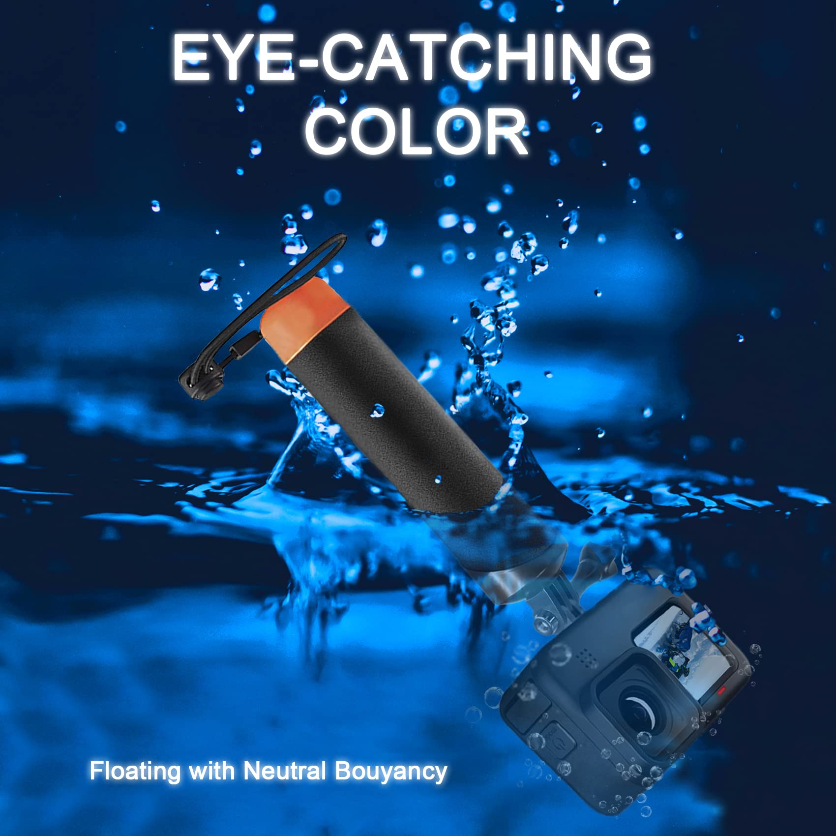 • 【Floating Grip】The floating body of the handler will keep the camera and accessory on the water surface and prevent it from drowning.