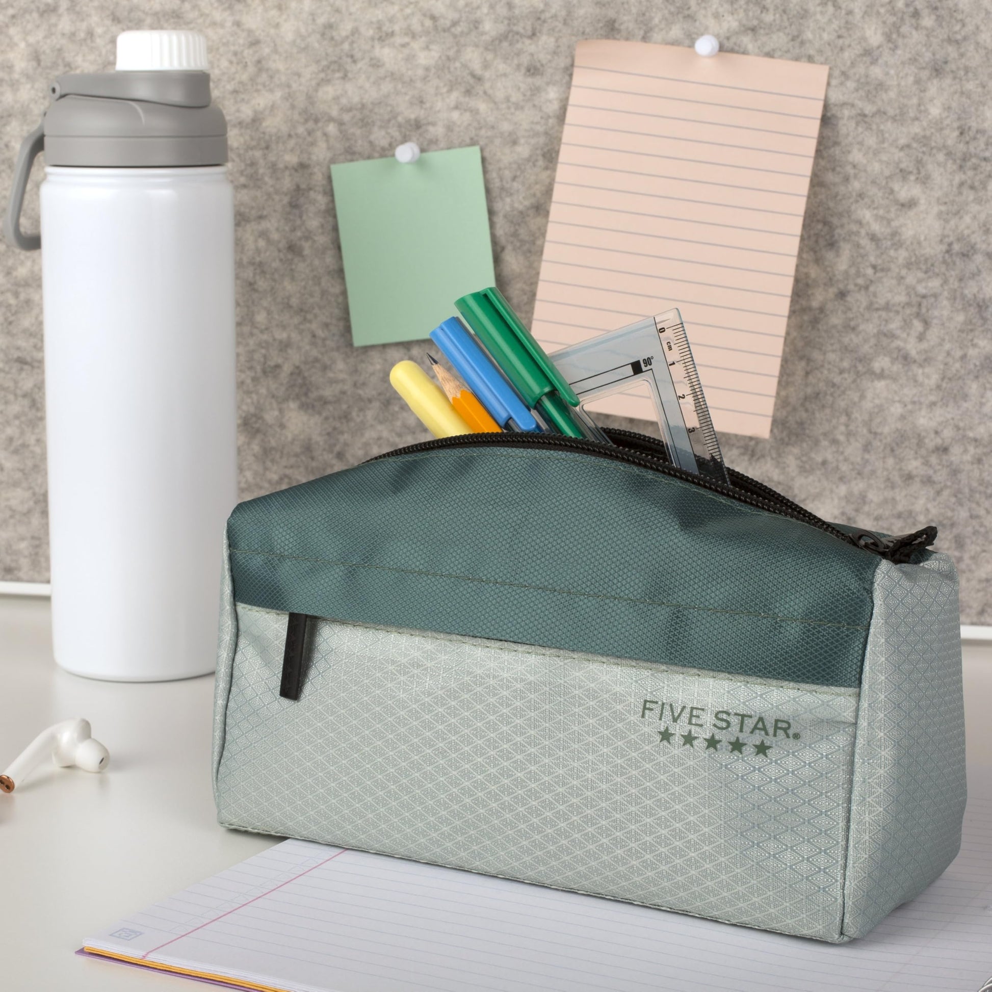 Five Star Pencil Pouch, Pen Case, 9-Pocket Zipper Pouch, Storage Organizer for School Supplies Earbuds Chargers Cables Makeup, Green/Juniper (500214F-ECM)