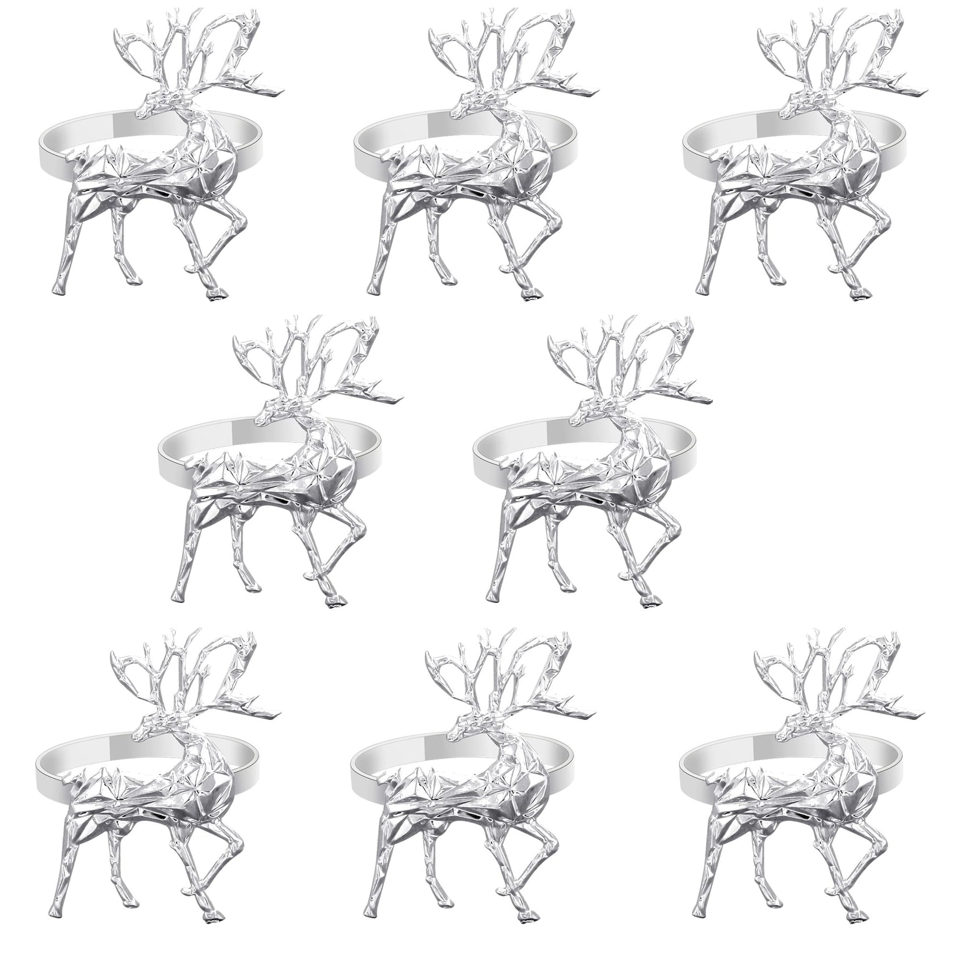 FKSWTV 6 Pack 3D Silver Reindeer Elk Napkin Rings Metal Holiday Fall Thanksgiving Christmas Halloween Wedding Home Table Decorations
