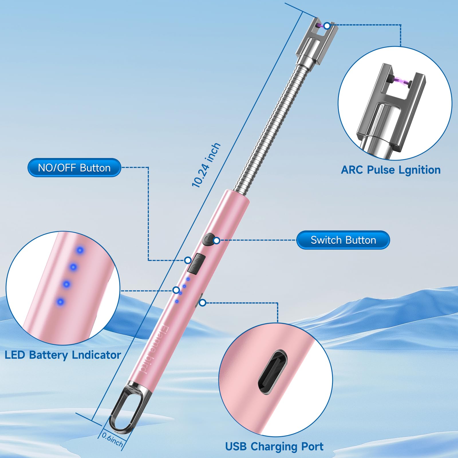 • 【Long Flexible Neck】Featuring a flexible neck that rotates 360 degrees, our electric candle lighter allows you to effortlessly reach tricky spots and light candles or grills from any angle.