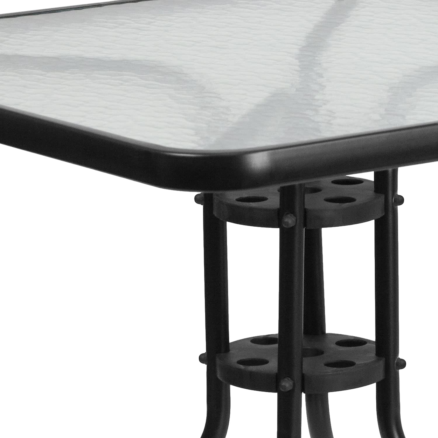 • Square Patio Table: 5mm thick glass, smooth clear tempered glass surface, 1.5' edge top