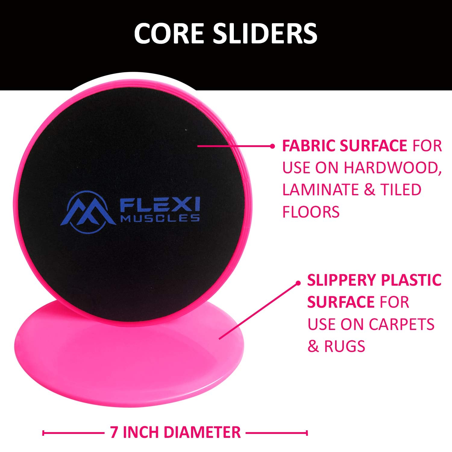 Flexi Muscles Core Sliders Dual Sided Sliding Discs for Use on All Floors. Our Core Sliders are ideal for Abs exercises, Yoga, Pilates and Home Workouts.
