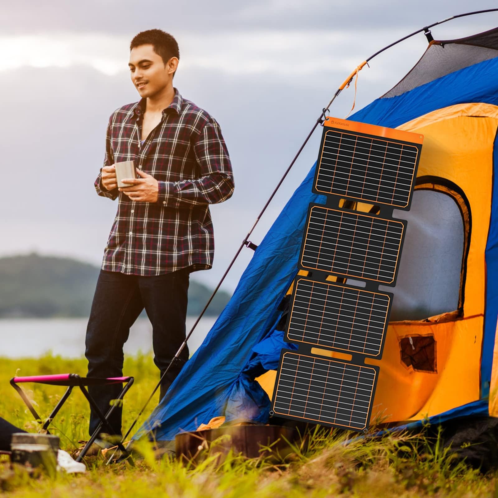 • 【Ultra-Portable Design】 Features 4 foldable monocrystalline silicon panels with lightweight construction (3.3 lbs/1.5 kg). Compact folded dimensions (12.0×9.8×0.7 match standard tablet sizes for easy backpack storage. Unfolds to 35.9×12.0 solar surface with 4 reinforced hanging eyelets and included carabiners for hands-free charging during hiking/climbing. Weather-resistant TPU coating ensures durability in mobile outdoor use.
