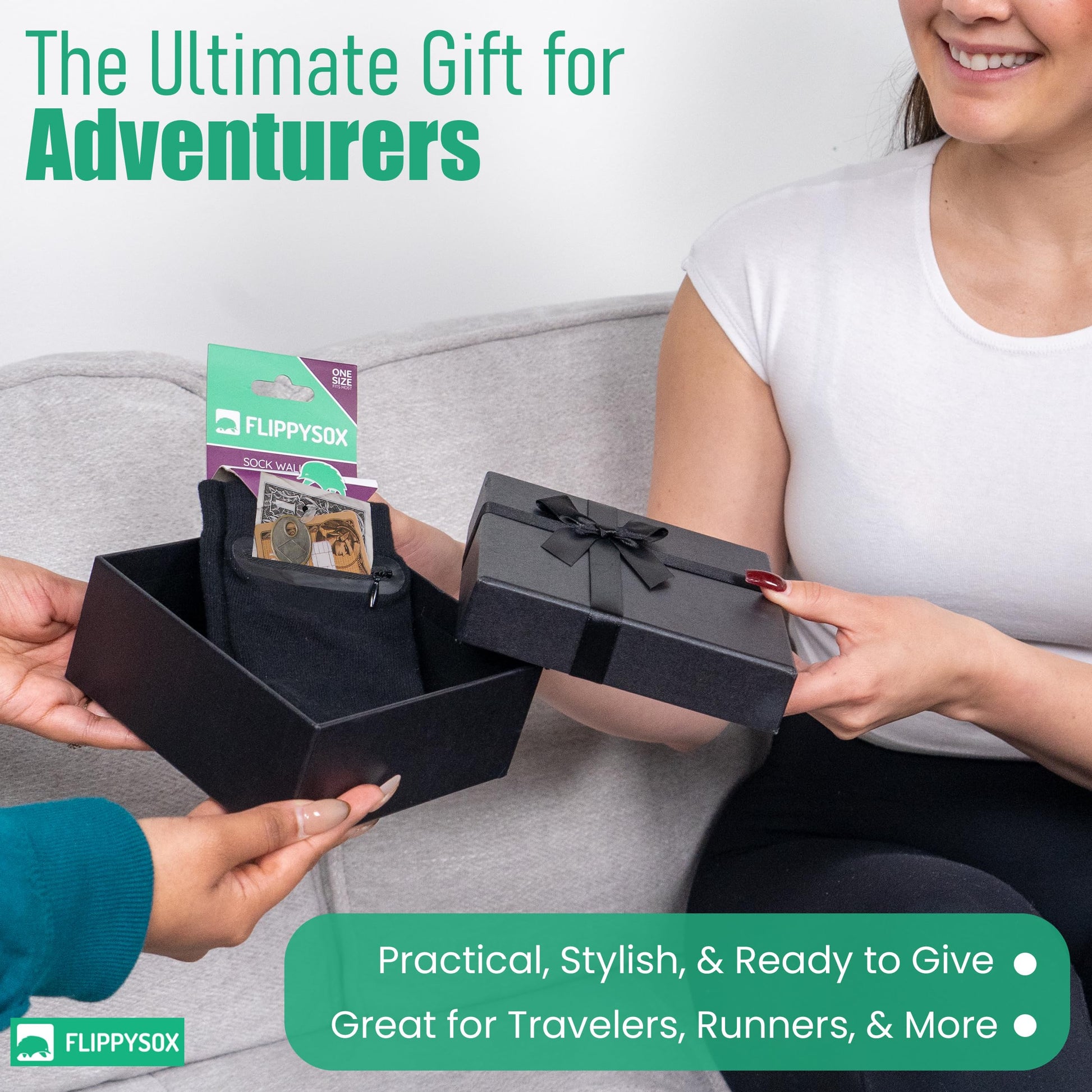 Flippysox Zipper Sock Wallet - Cotton & Polyester Zipper Socks with Pockets - Fits shoe size 6-13 (Black)