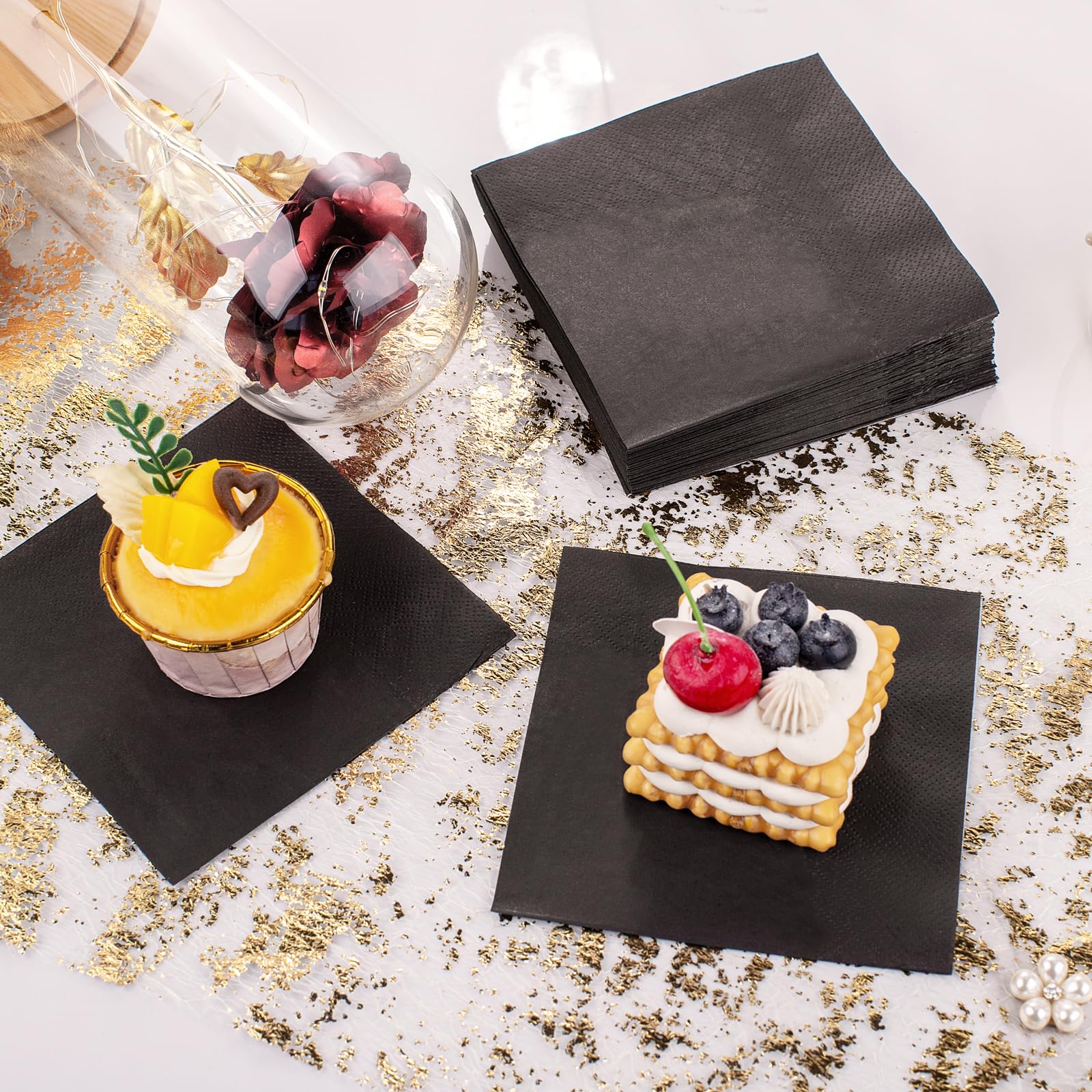 • PERFECT ALTERNATIVE: Black beverage napkins are a must-have for guests who demand high-end comfort and luxury. Cocktail napkins are black disposable napkins that guests discard immediately after use, making them a great alternative to wet and dirty towels.