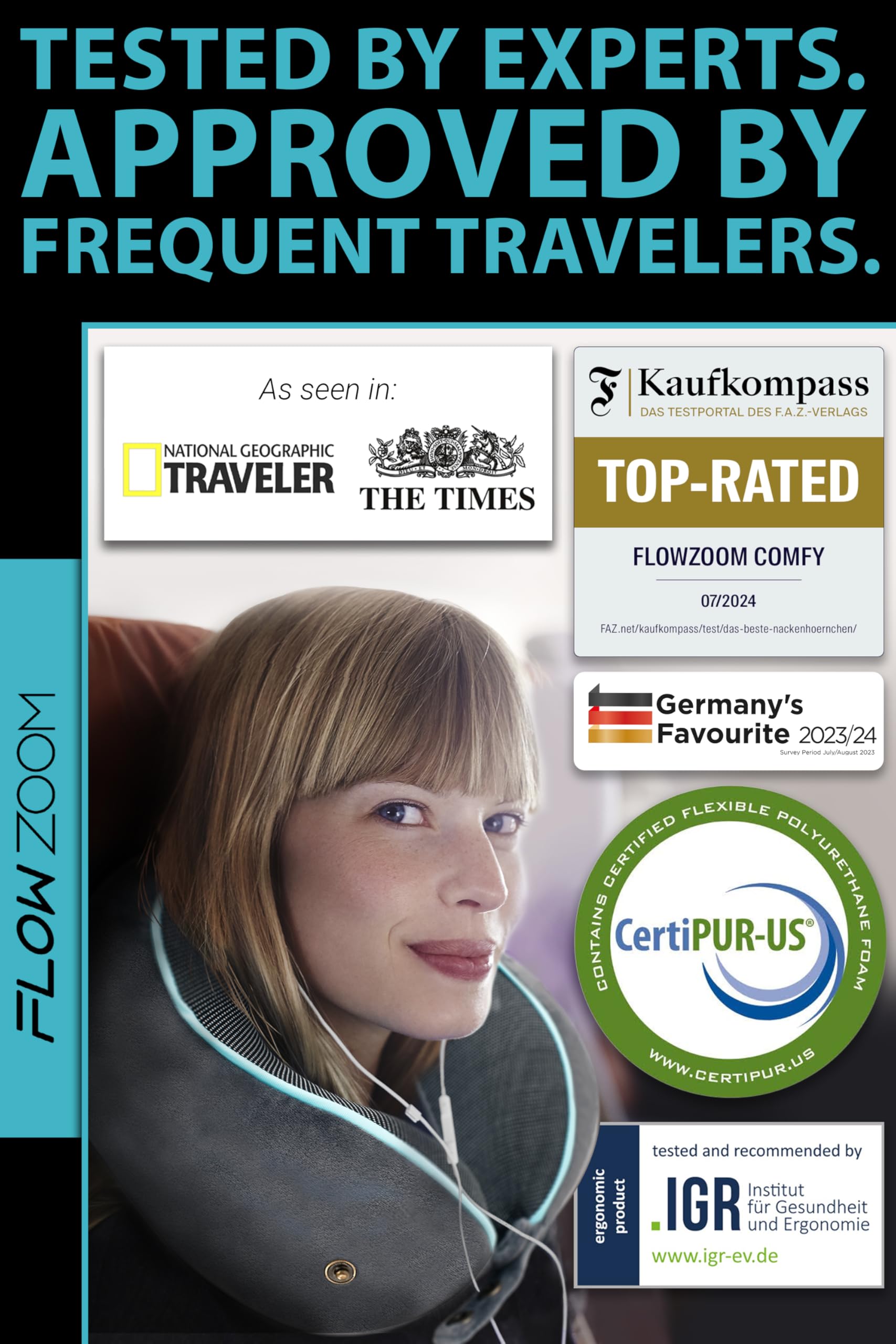 • Precision Design: Developed and tested in Germany to support ergonomically correct seated posture for enhanced travel comfort