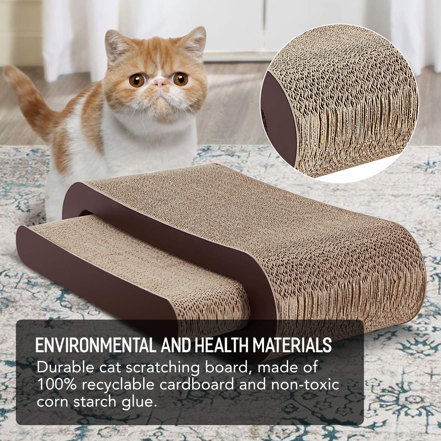• [Rest & play]: Special designed shape corrugated cardboard scratcher is a perfect place for rest & play. Apart from scratching it, cats treats it like bed and lie on it.