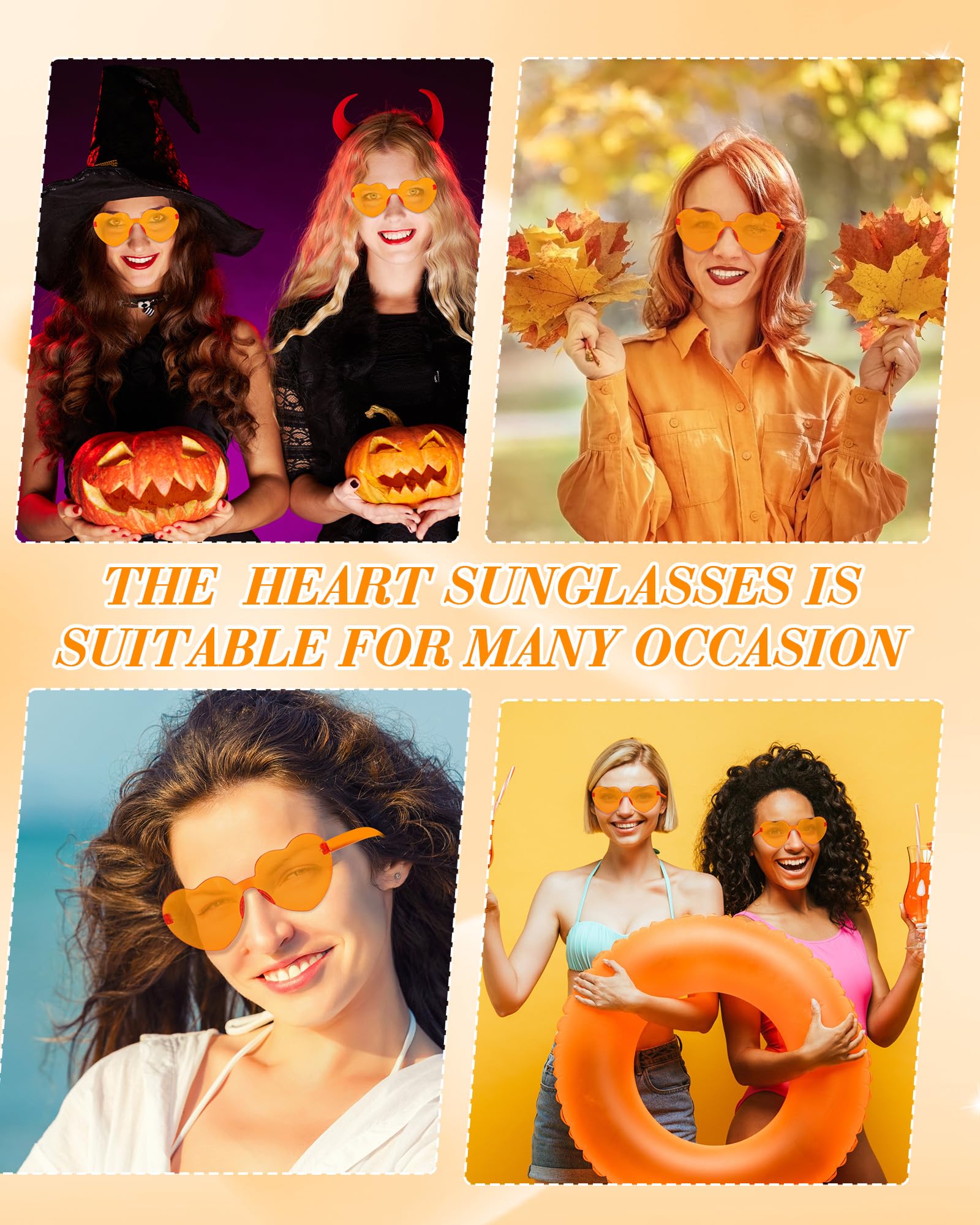 Flutesan 30 Pairs Heart Shaped Sunglasses Bulk Spider Halloween Party Rimless Heart Sunglasses Candy Color for Women Men(Orange Color)
