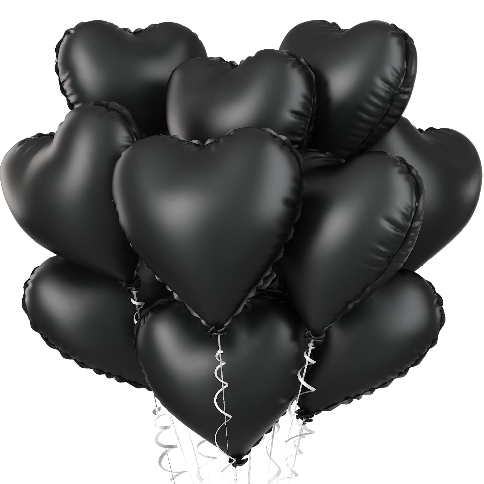 • πŸ’– 10 PCS BLACK FOIL HEART BALLOONS: Package contains 10 x 18 inch black heart balloons, 1 x 10m ribbon.The black heart shape balloons are specially shaped, the perfect size for your holiday or party decorating needs, together create a fun and surprising party, leave an unforgettable smile!