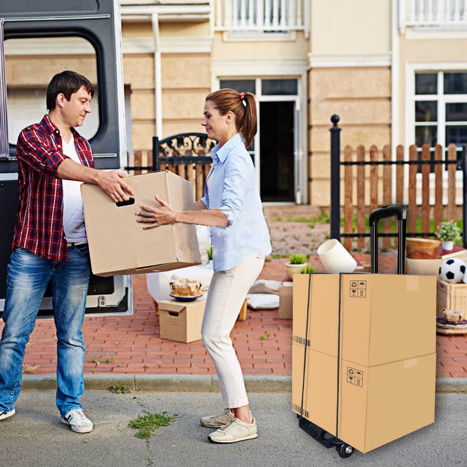 • 【MULTIFUNTIONAL & WIDELY USE】: Unique folding design, two gears adjusting, perfect for shopping, travel, luggage moving, outdoor carry, moving house, cargo handling, warehouse delivery, home, school, office daily use, etc. Let our rugged dolly cart do the heavy lifting!