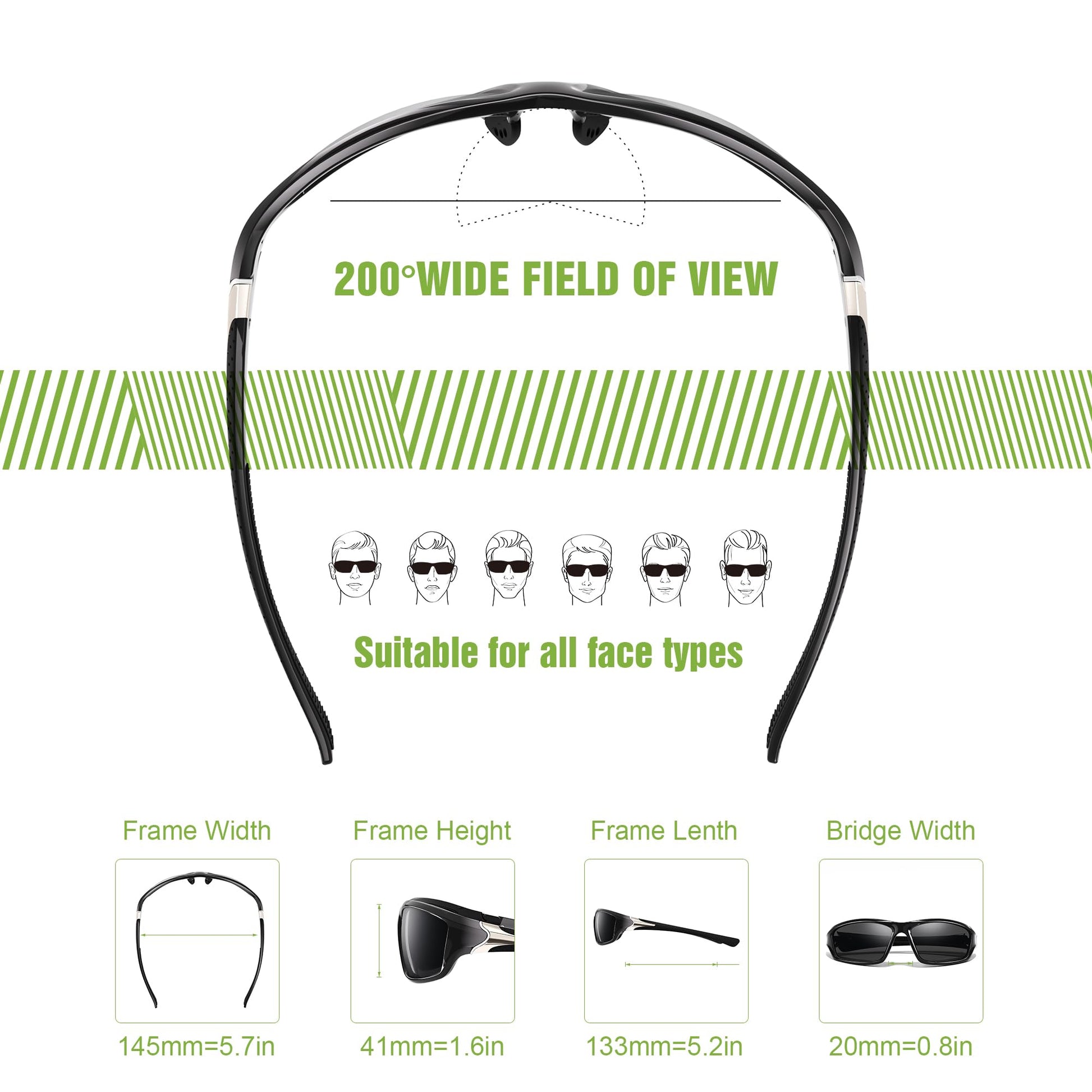 • Exquisite Packaging and Care Tips:Mens sunglasses polarized UV protection comes with mens polarized sports sunglasses*3, glasses case*1, cleaning cloth*1, glasses pouch*1, glasses strap*3, polarization test card*1, making them an ideal present for friends and family. Special Tips: To protect the integrity of the cycling sunglasses lens coating, please avoid exposing the sunglasses to extreme high temperatures, such as direct contact with hot water