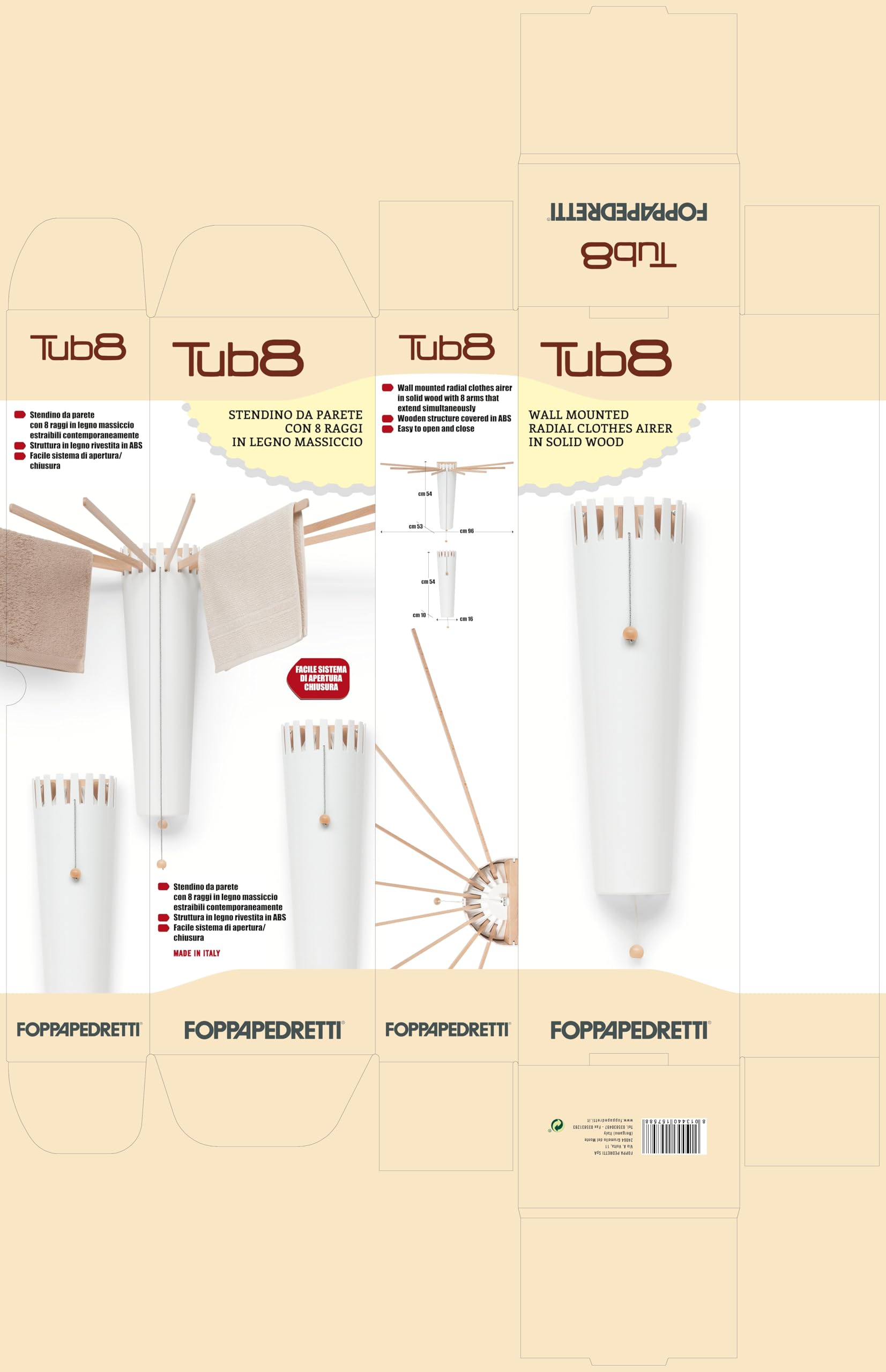 Foppapedretti 9900424503 Tub8 Wall Dryer Natural Beech