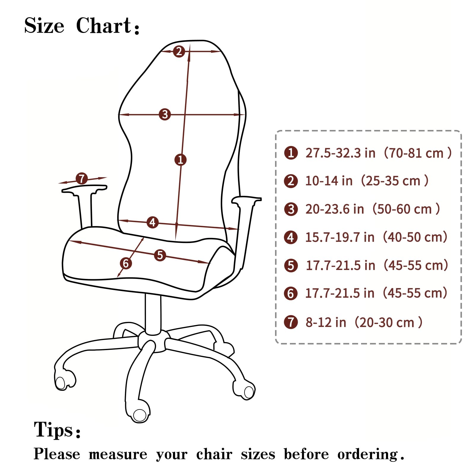 • ☑ [Size of Best Suitable Computer Gaming Chair Size]: Back Height: 31.5-37.5in (80-95cm);First Back Width: 10-14in(25-35cm); Second Back Width: 24.5-27.5in (60-70cm); Third Back Width:17.5-24.5in (45-60cm);Seat Length:17.5-21.5in(45-55cm);Seat Width:21.5-25.5in(55-65cm); [Size of Best Suitable armrest size]: Armrest Length is 8-12in (20-30cm). Please check the measurement guide in the item picture before order.