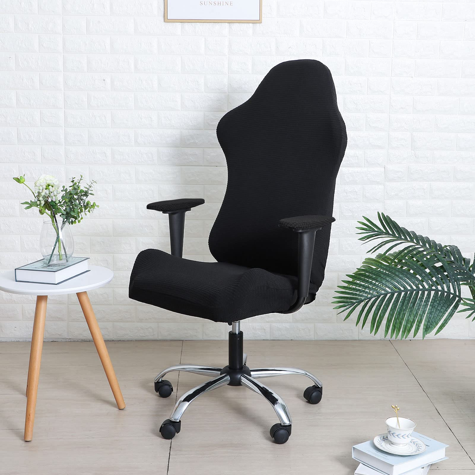 • ☑ [Elastic fabric for easy application]: the gaming chair covers offer an impressive stretch property allowing them to fit the chair well which can be removed and put back. Two sides Zipper design and chair seat cover bottom Ties design offers perfect fit and non-slip grip, 5 minute is enough to install chair cover. No matter what material your chair is, our chair cover will fit like a glove.